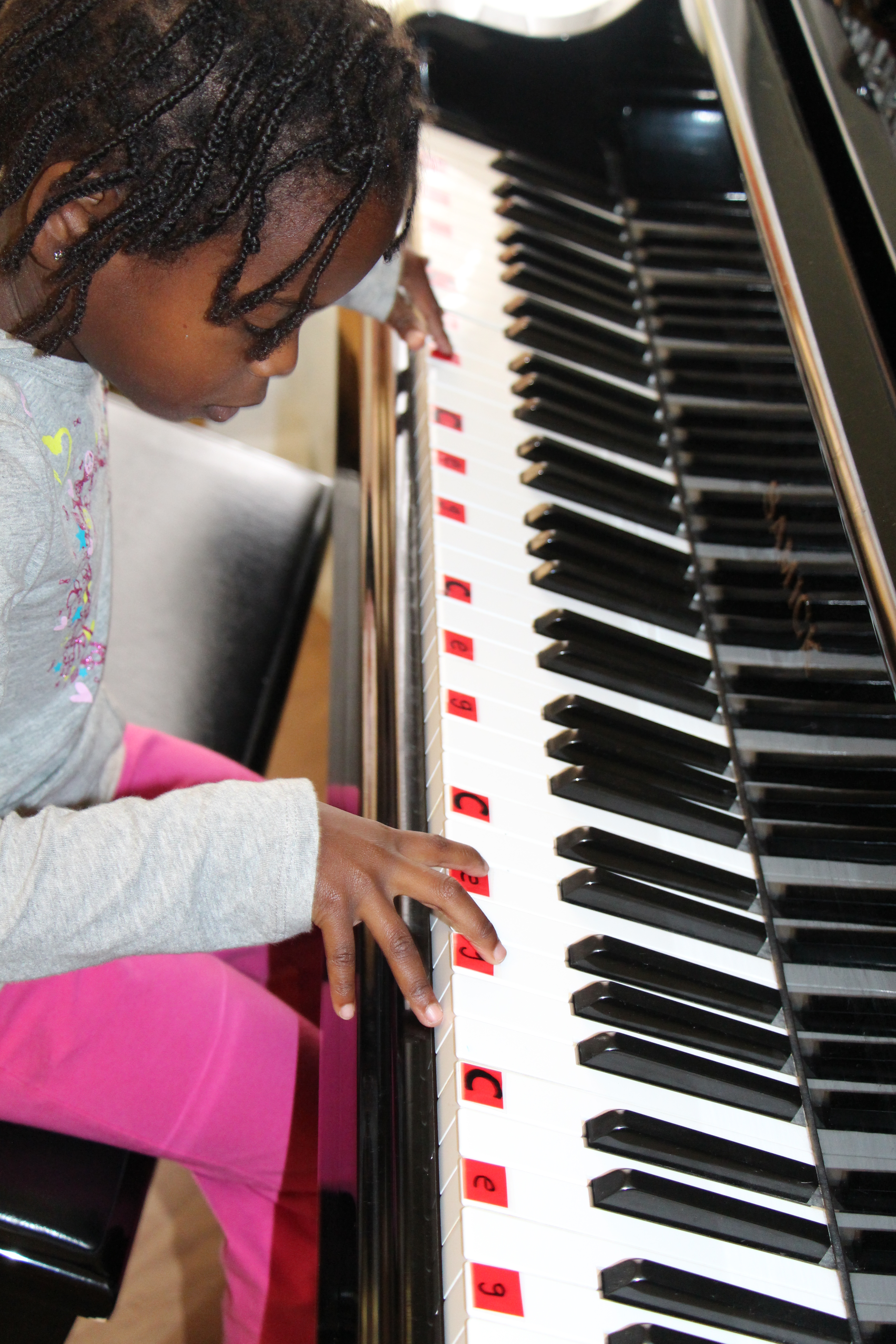 One lesson this week that everyone loved was an introduction to playing the piano. Everyone was crazy about this lesson and we made sure they all had a chance to play some tunes on the piano during work cycles. She also offered her electronic keyboard from home to play on, since it was such a hit. With a modern approach, Angelique began teaching the children variations of the C Major chord (c,e,g).