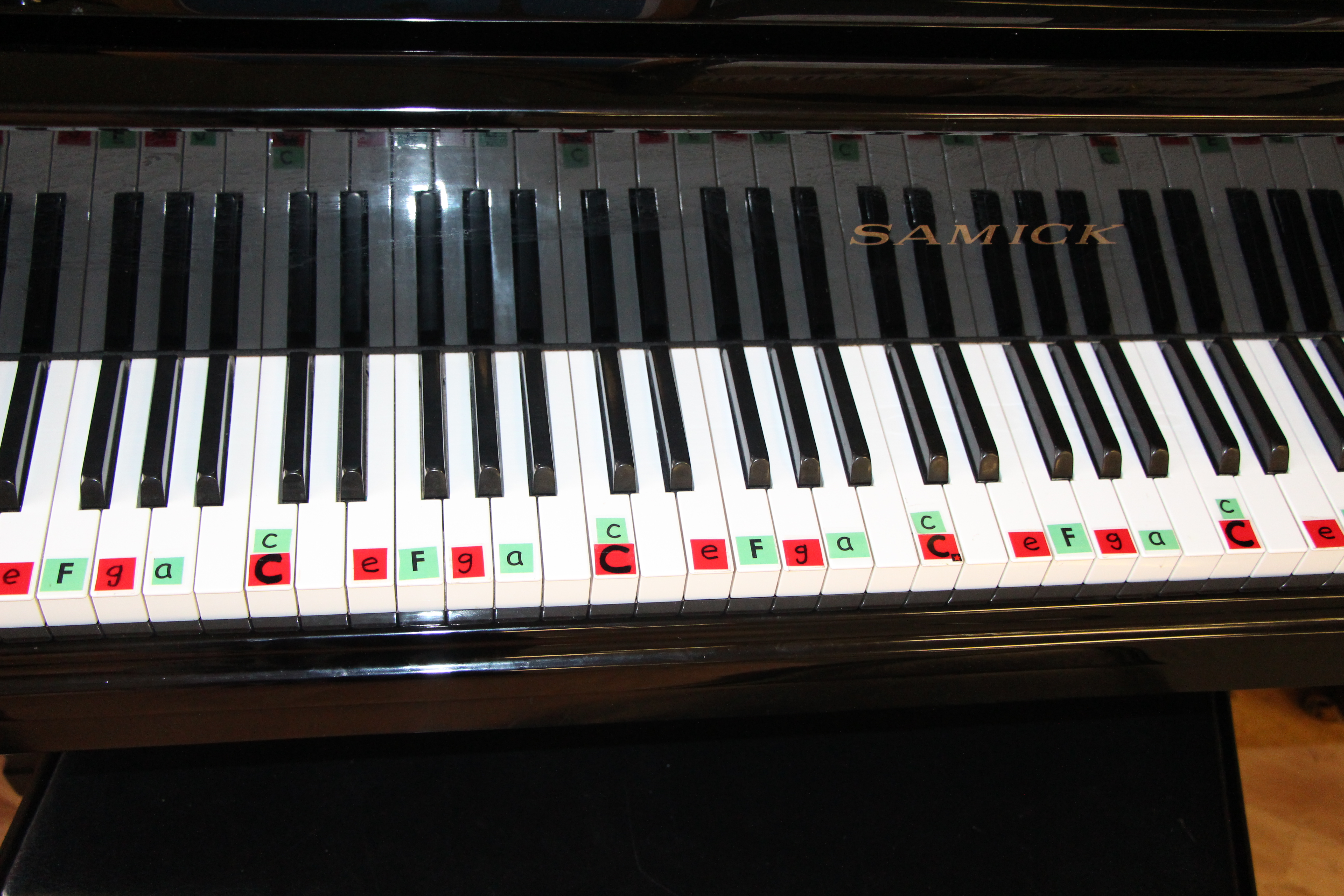 Finally, I get to the point I am trying to reach by wiping away the dry erase letters except for any C, E, or G note (which make up the C Major Chord). That’s right, I am teaching them chords first. Why? I suppose it has a lot to do with the fact that I had too many bad piano teachers in my earlier years whose techniques I found very boring. I eventually quit piano for years until I gave it another go in college. Typically, everything I was taught to play as a child was very structured, boring, and repetitive. It wasn’t until I took piano classes in college that I realized it doesn’t have to be so excruciating.