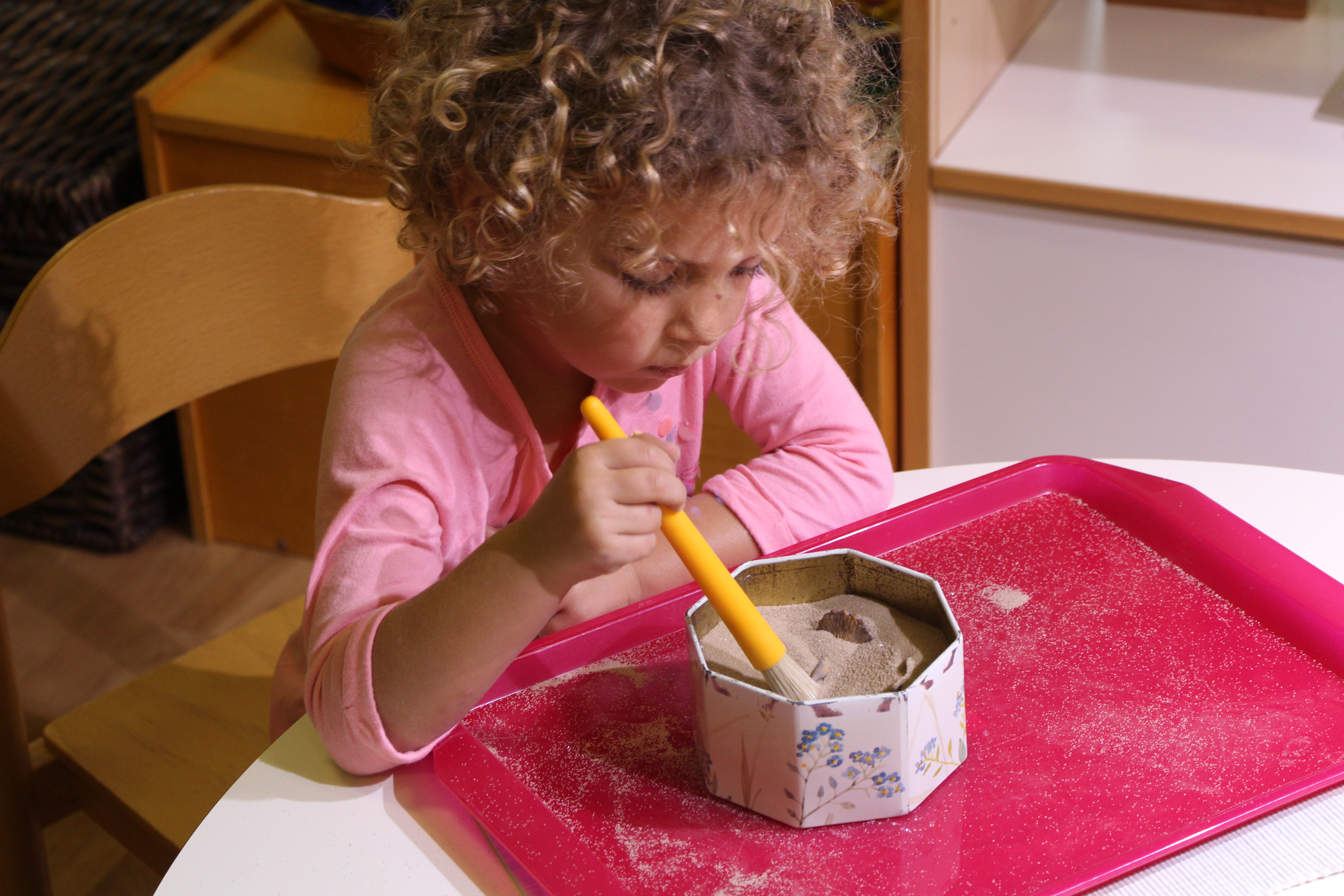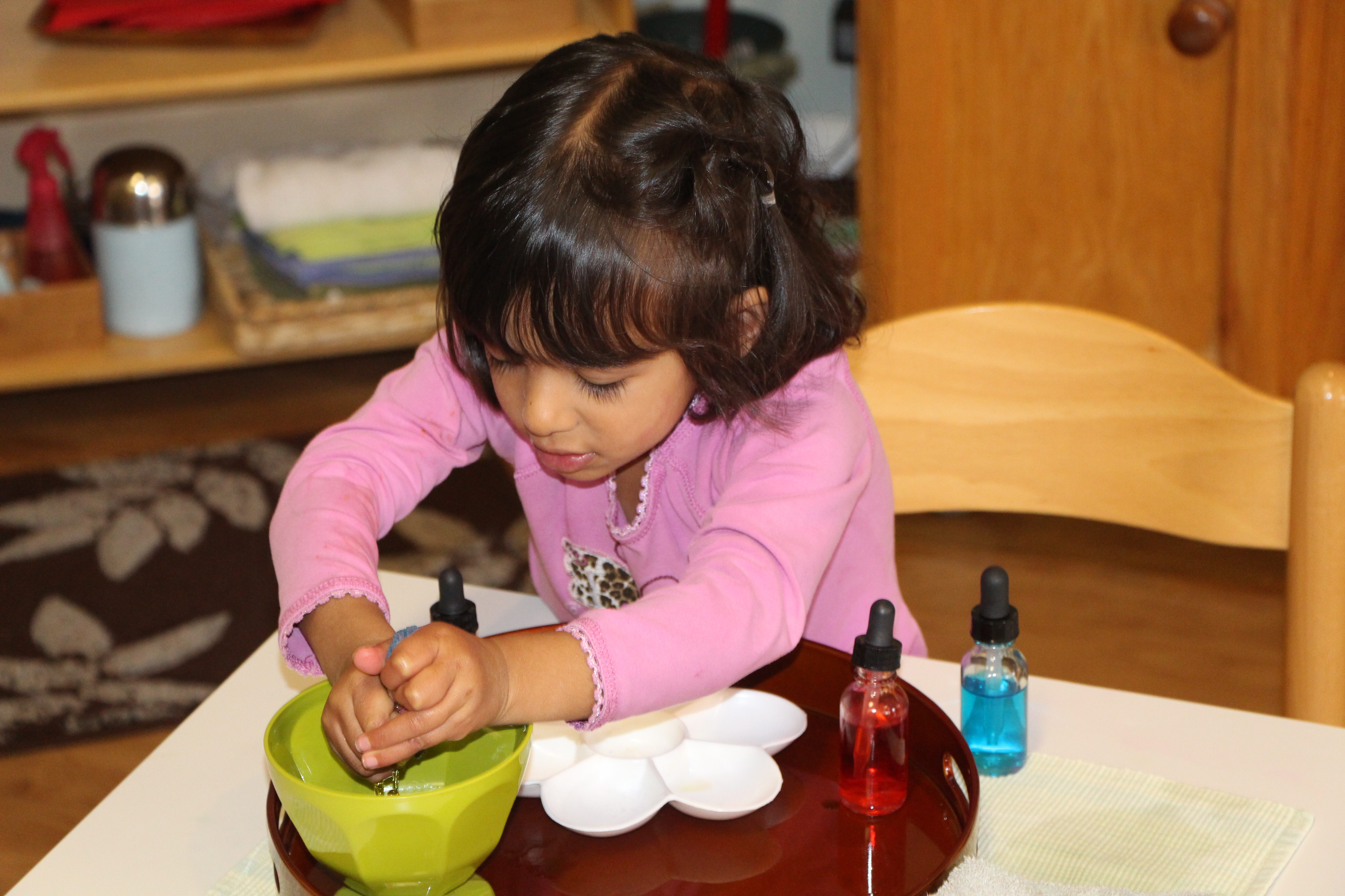 During the work cycle, we played memory games with individuals by verbal fetching, a Montessori technique that keeps kids focused and active as they “fetch” items in the classroom that solve a puzzle or complete a work. For example, as kids are learning their colors, a teacher might place color tablets on a table and then place their matching color tablets on a rug across the room. Then, the teacher will sit at the rug with the child, point to a color and tell them the name of the color. Finally, we ask that they go fetch the matching tablet. The child must remember what the color looks like as they go across the room to find its match, bring it to the rug and then state the name of the color. To the child, it feels like a playful game as they begin to learn new vocabulary. This week, some kids worked on fetching colors, geometric shapes, and countries from our geography map puzzles.