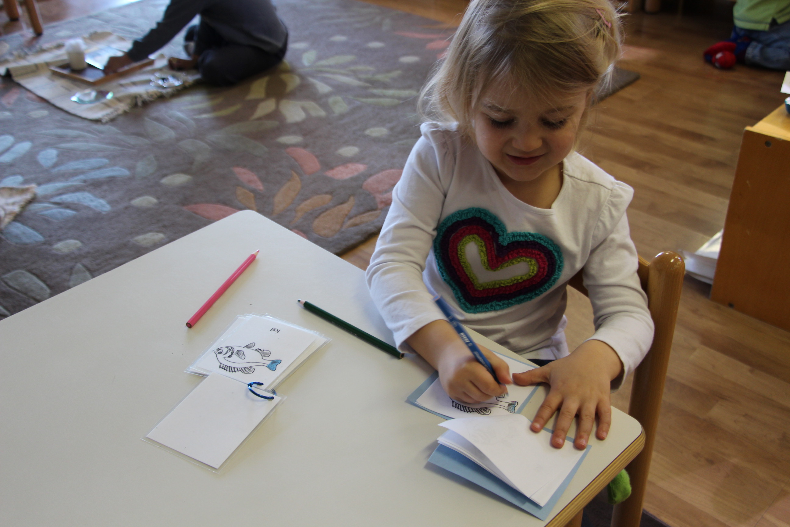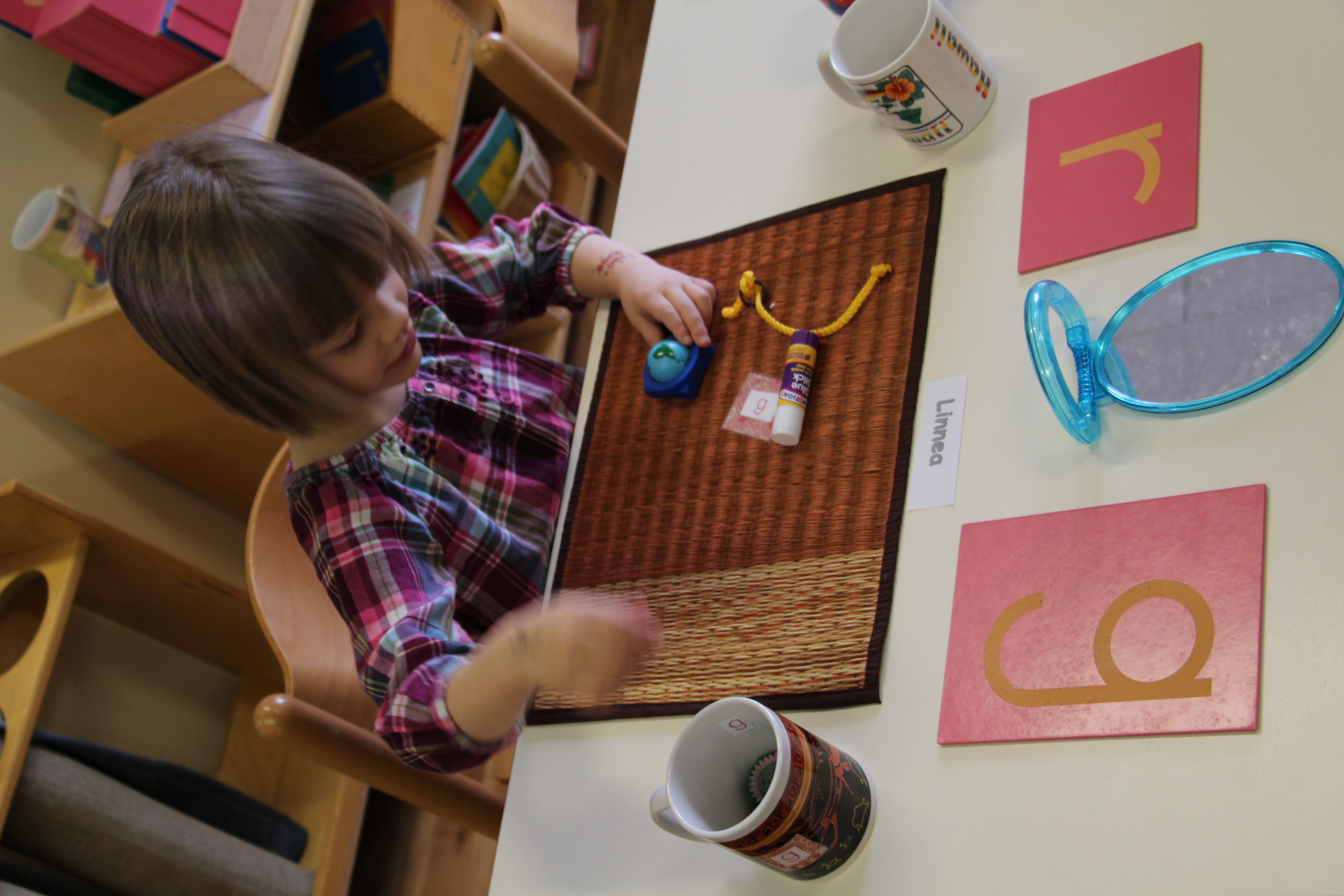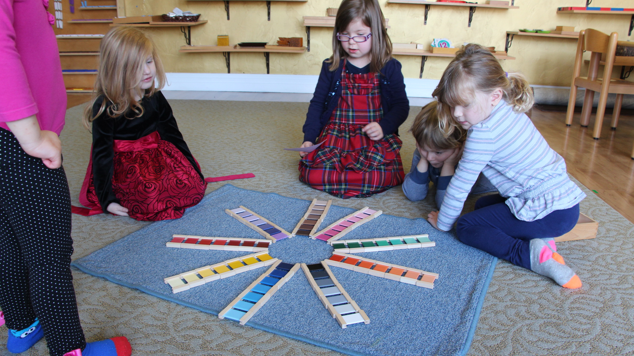 Grading Shades of Colors Extension- This extension started out with a lesson on a nonagon, and then the kids were shown how to grade the colors around the nonagon, which ended up looking like a sun or a flower. This lesson truly brought new life to the Montessori material as many kids were excited to try it out.