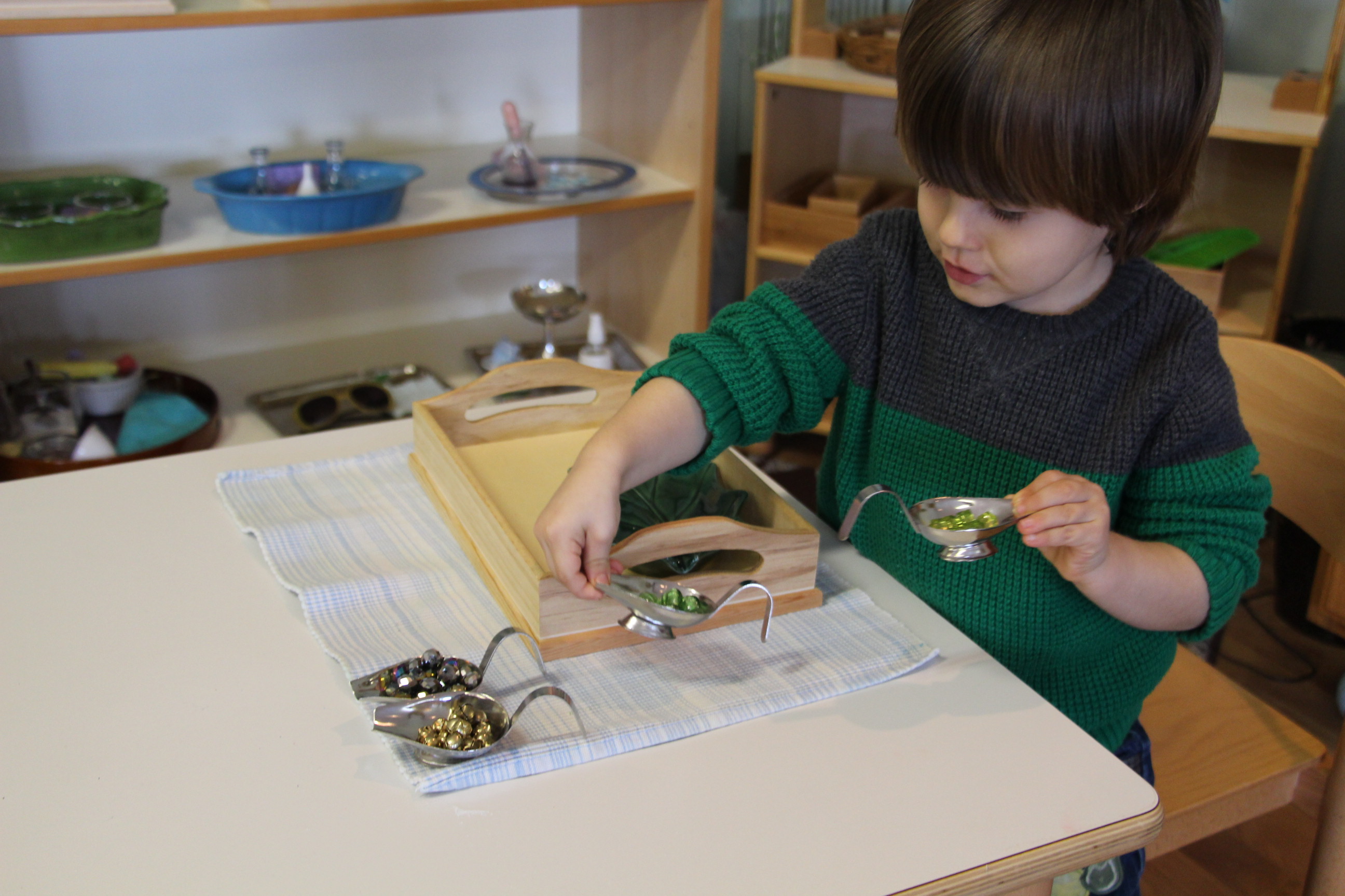 Zipping a Zipper- While we’ve had this lesson before with the zipper frame, it’s a lesson we go back to again and again. This week, we were finally seeing many kids zipping their own zippers on their coats, without any help! Many kids were really proud of themselves for doing so, or at least making an effort.