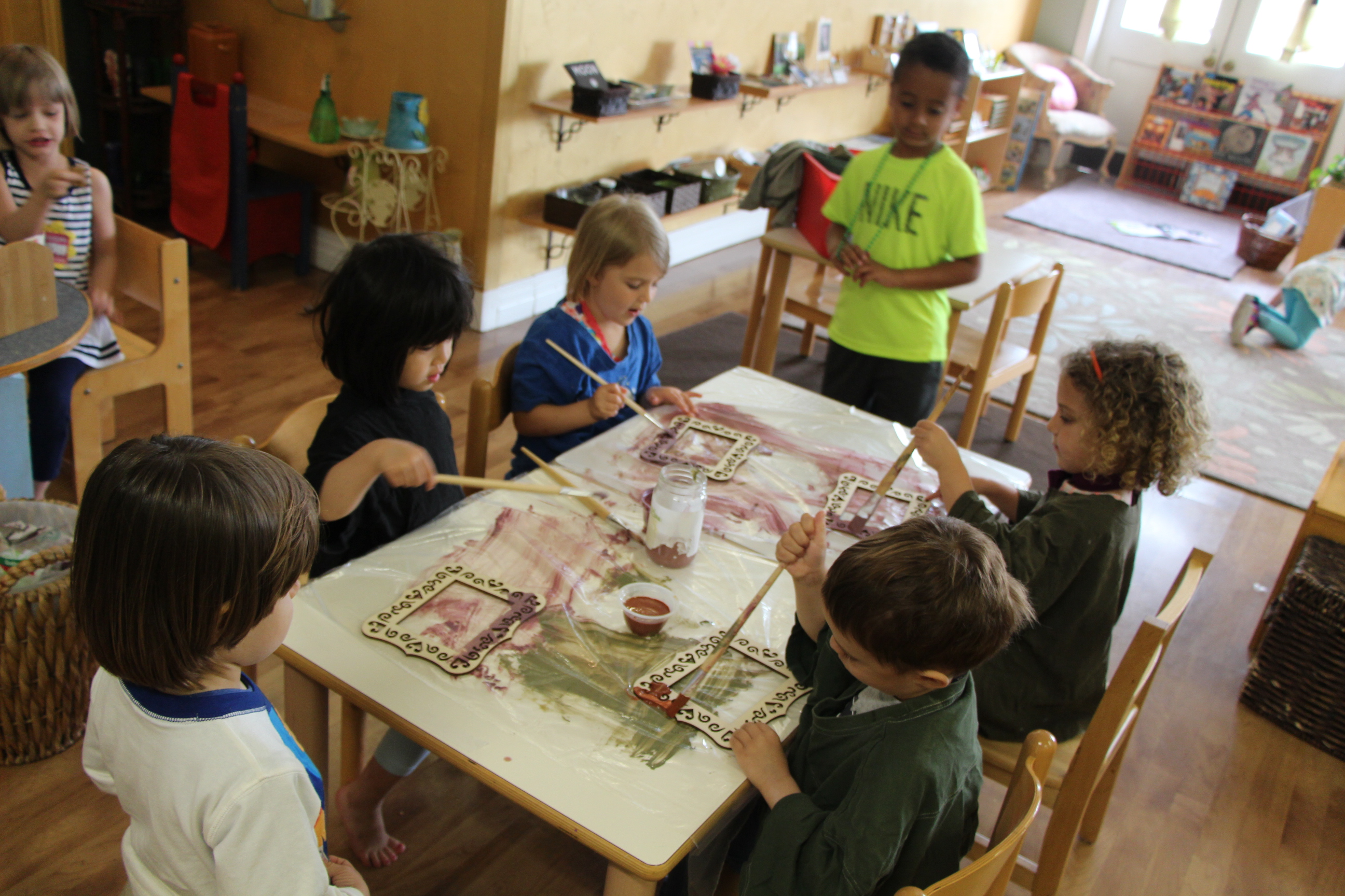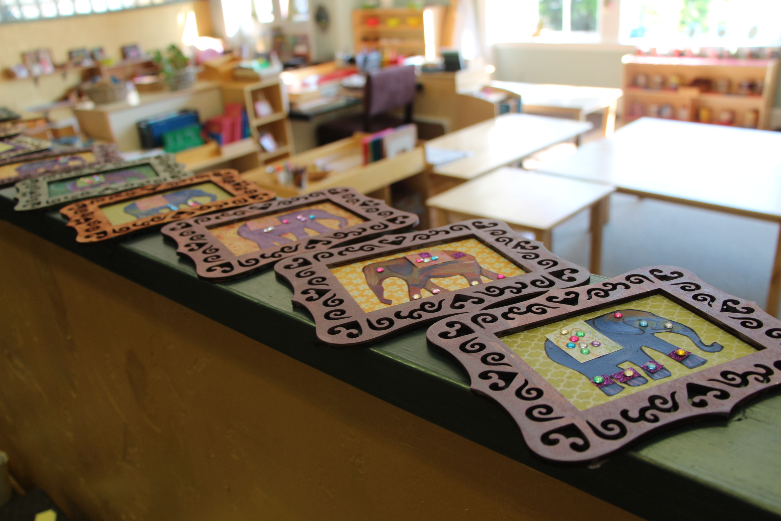 Mostly, they practiced singing a lot, learned some basic sign language to the song, “Stand by Me,” along with practicing some other songs of their choice for our Mother’s Day celebration. After a brief lesson about how elephants are seen as a symbol of wisdom, strength, loyalty, and good fortune, we worked on making “lucky elephant art” for the moms. In many cultures, mainly traced back to historic India, it has been said to be good luck to receive an elephant as a gift, so we thought we would send some good energy to the moms. We decided on a framed image of an elephant, and they started the project by painting a wooden frame.