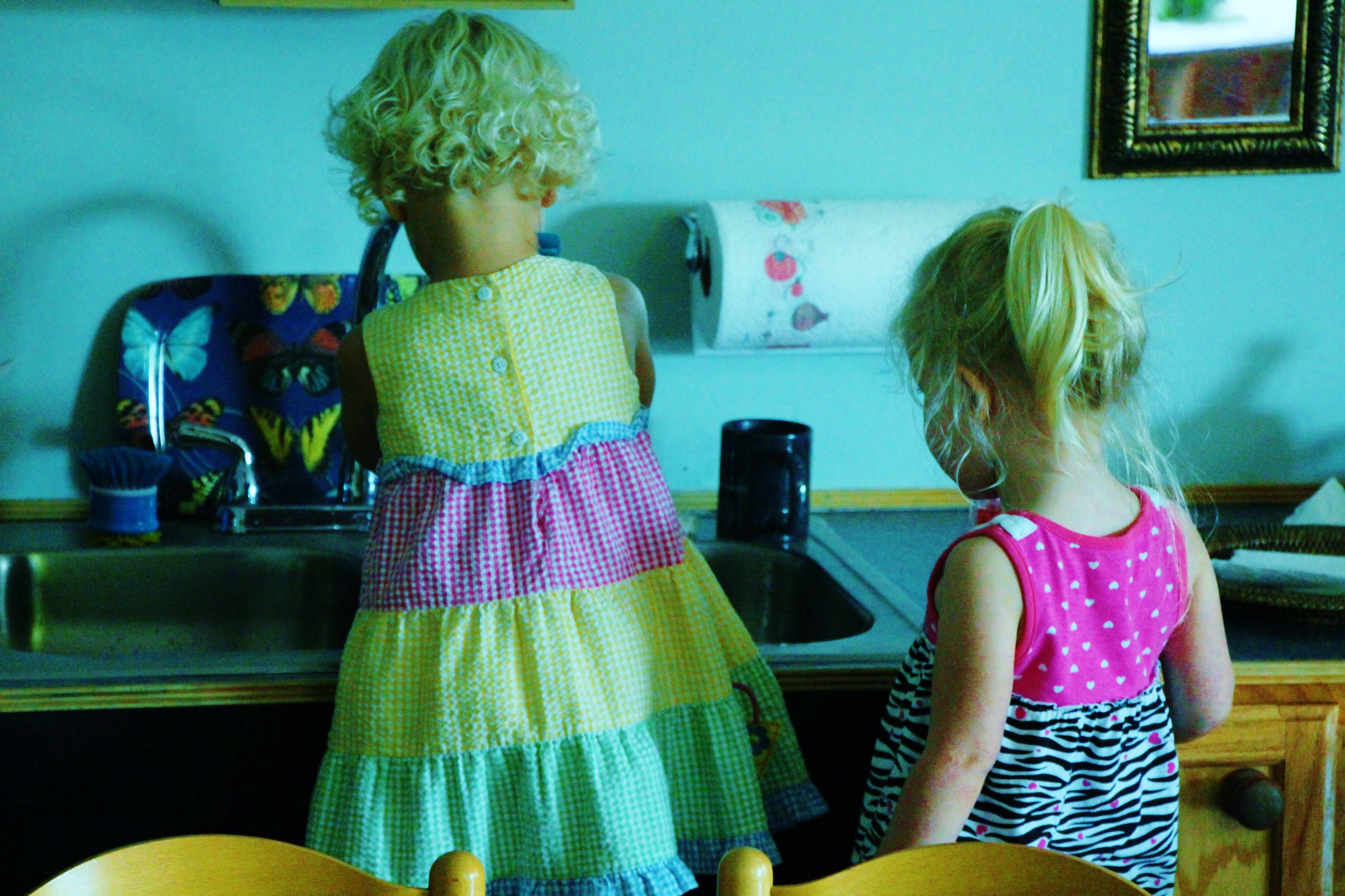 We have also been working on setting the table in the lunch room.  Throughout the week, kids took turns setting plates out, unpacking lunches onto the plates, pouring water, using napkins, washing dishes, and cleaning up afterward.