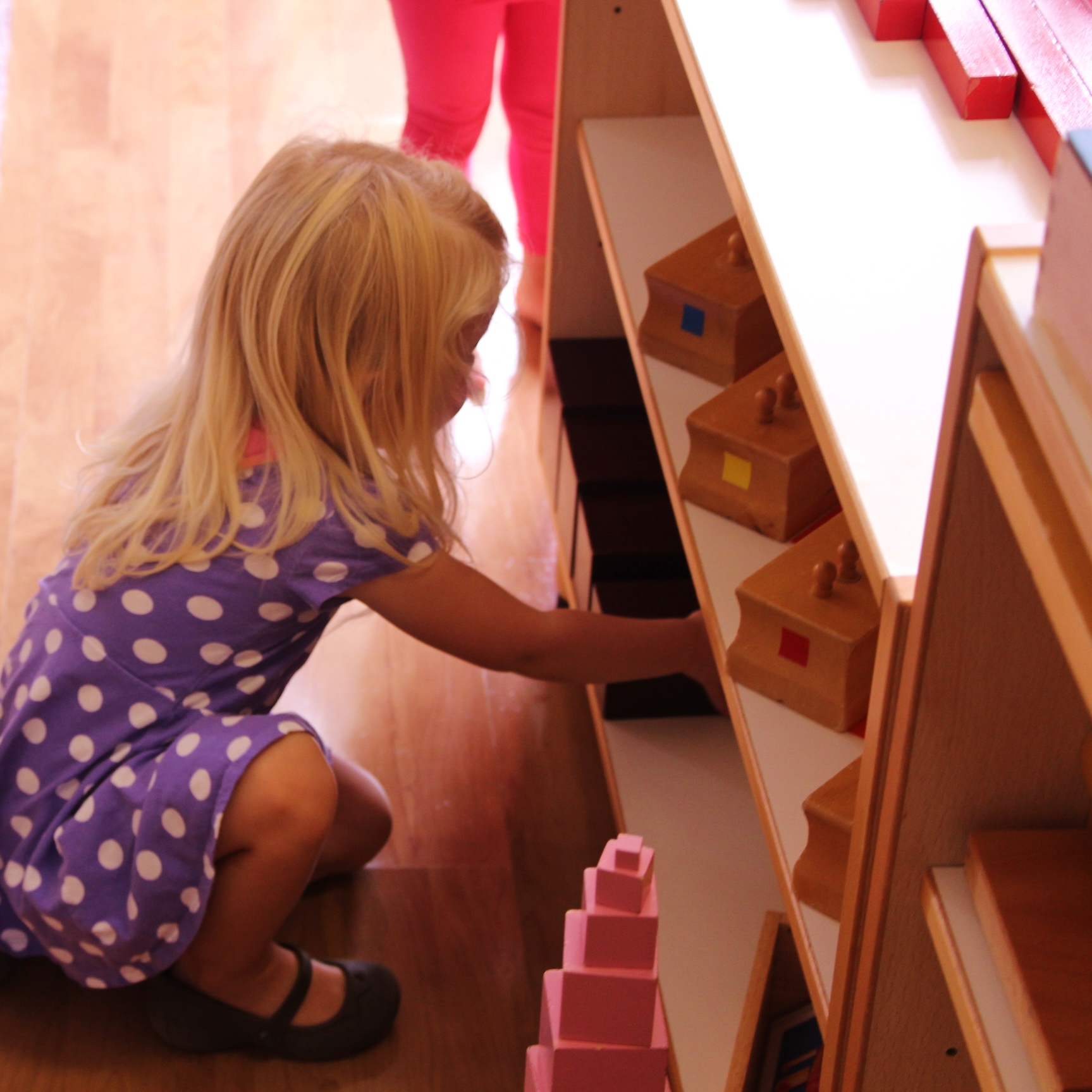 I (Angelique) taught a variety of Montessori sensorial material that focuses on the development vocabulary, building an understanding of spacial relationships, and refining the senses.