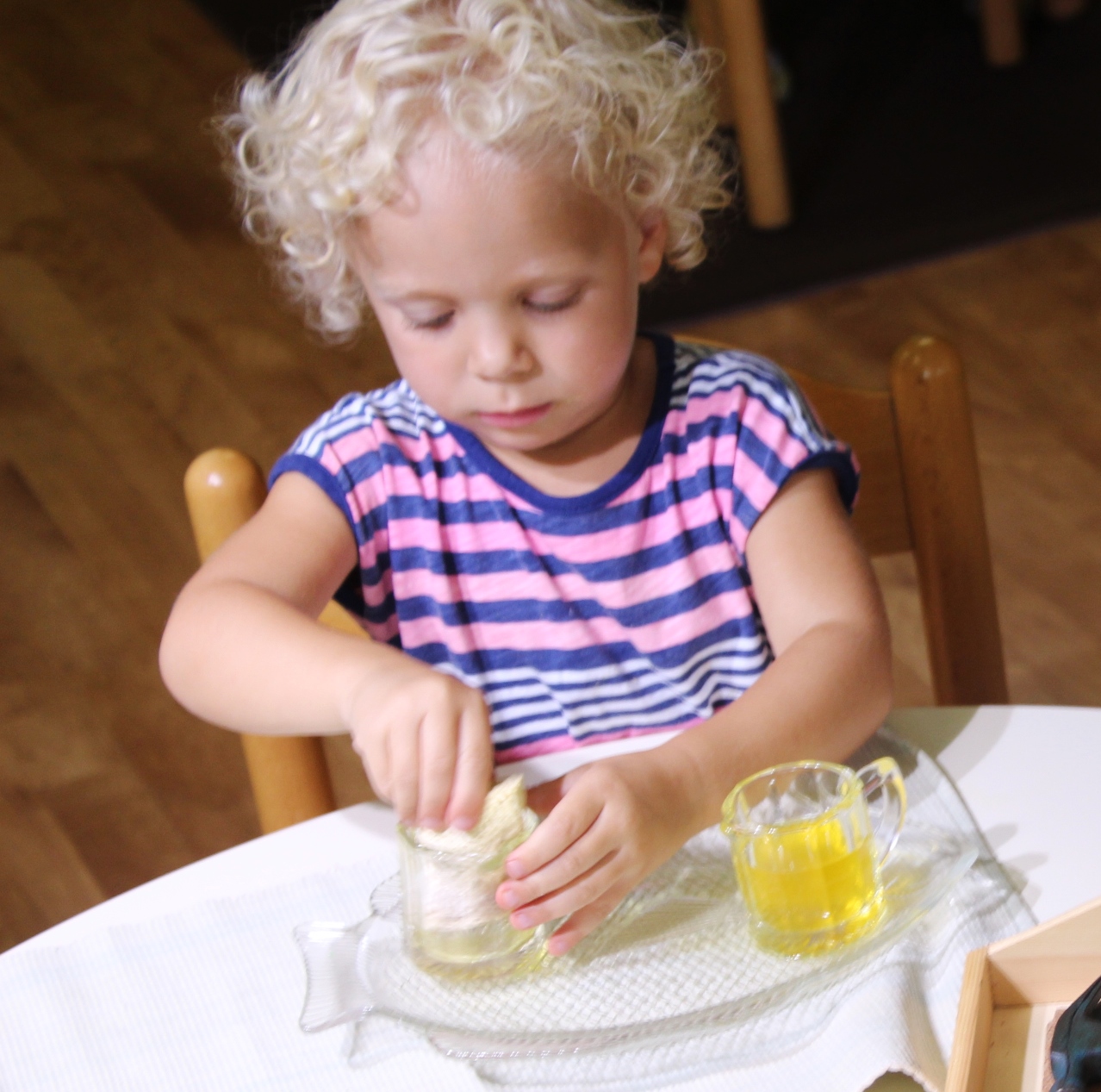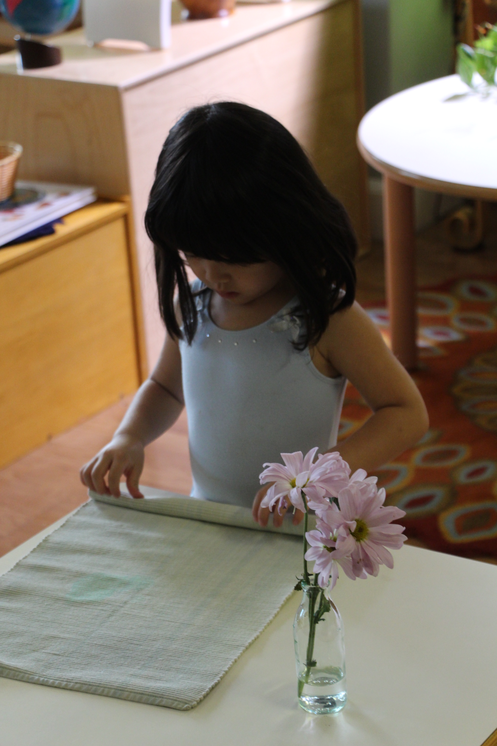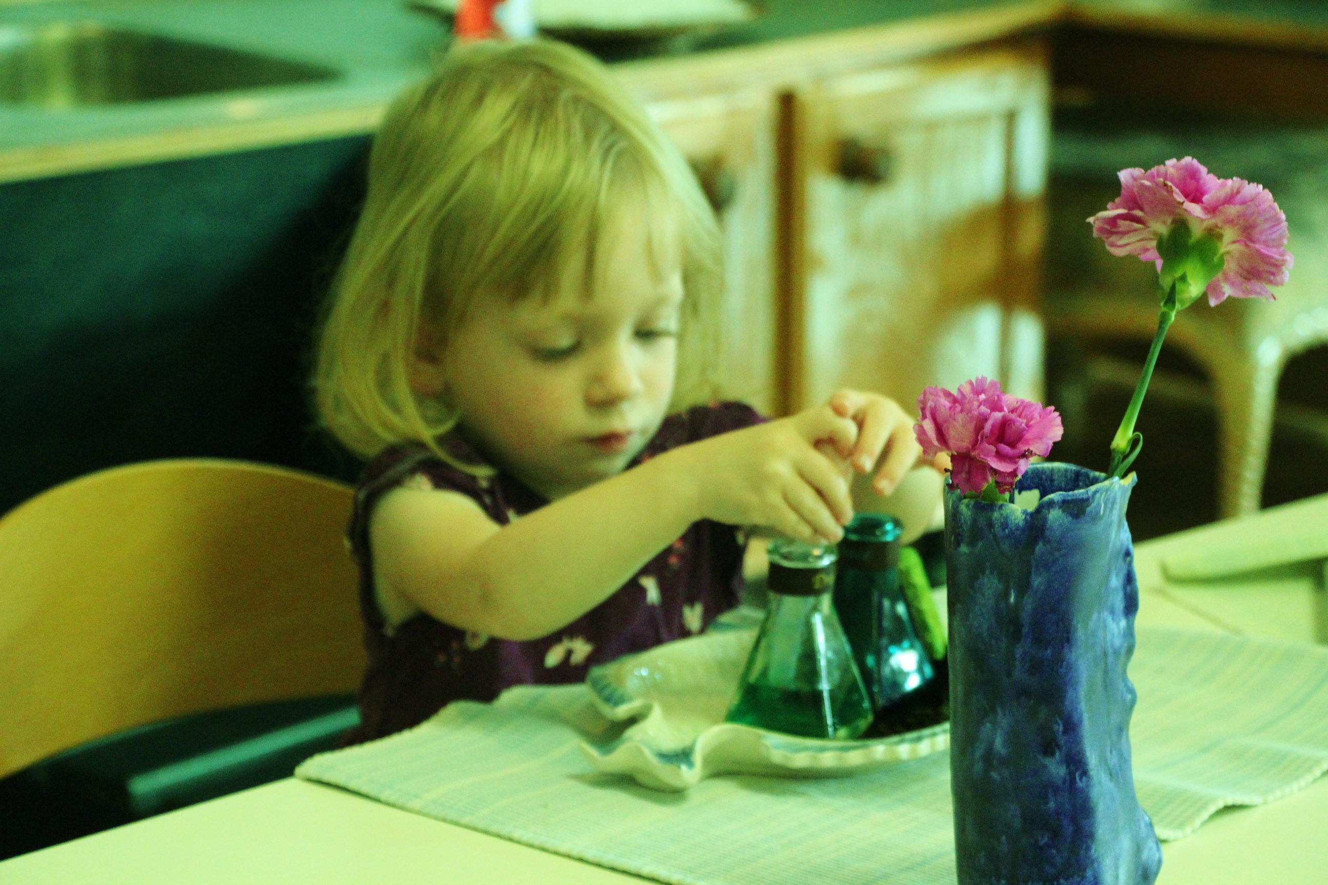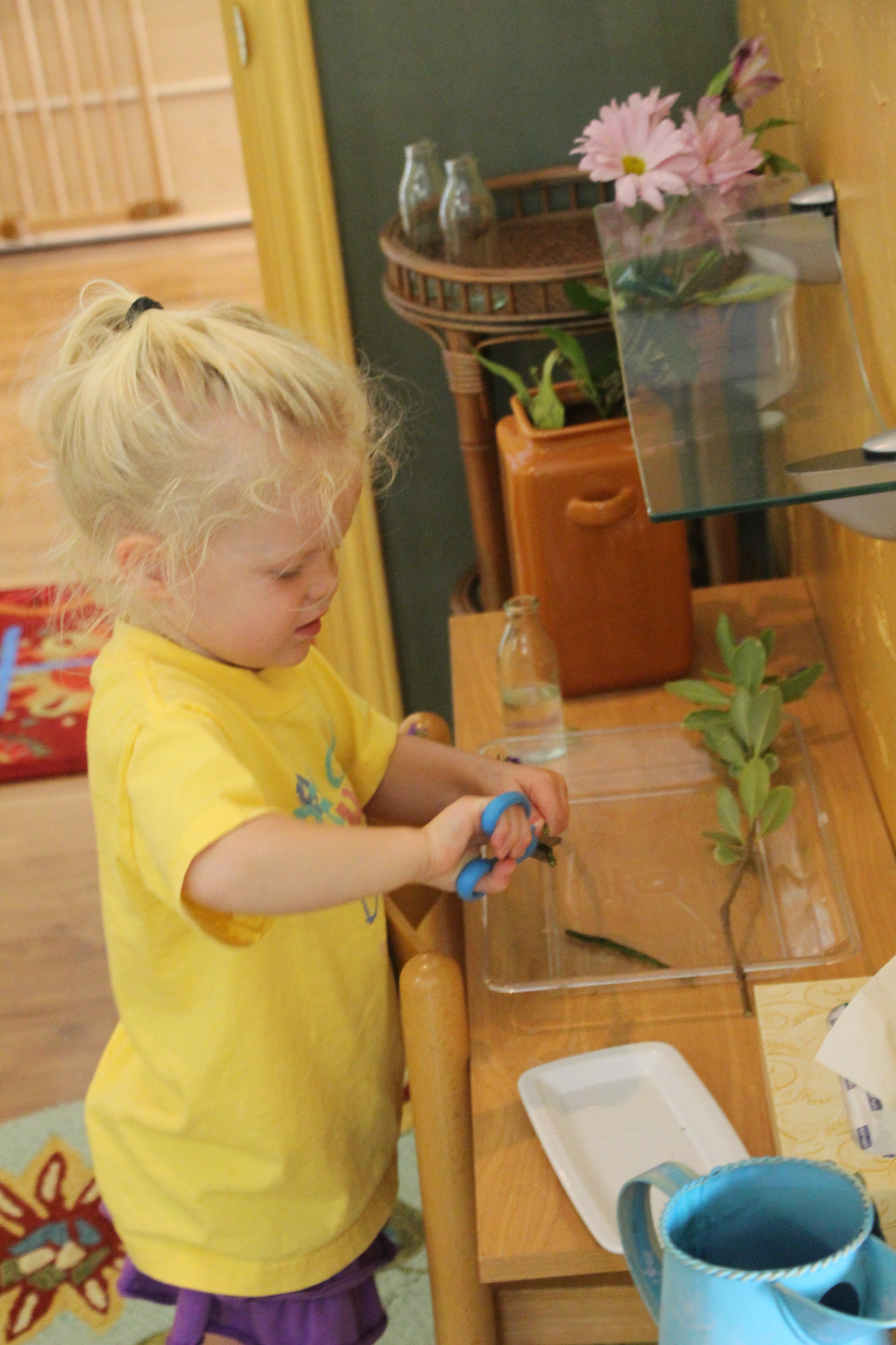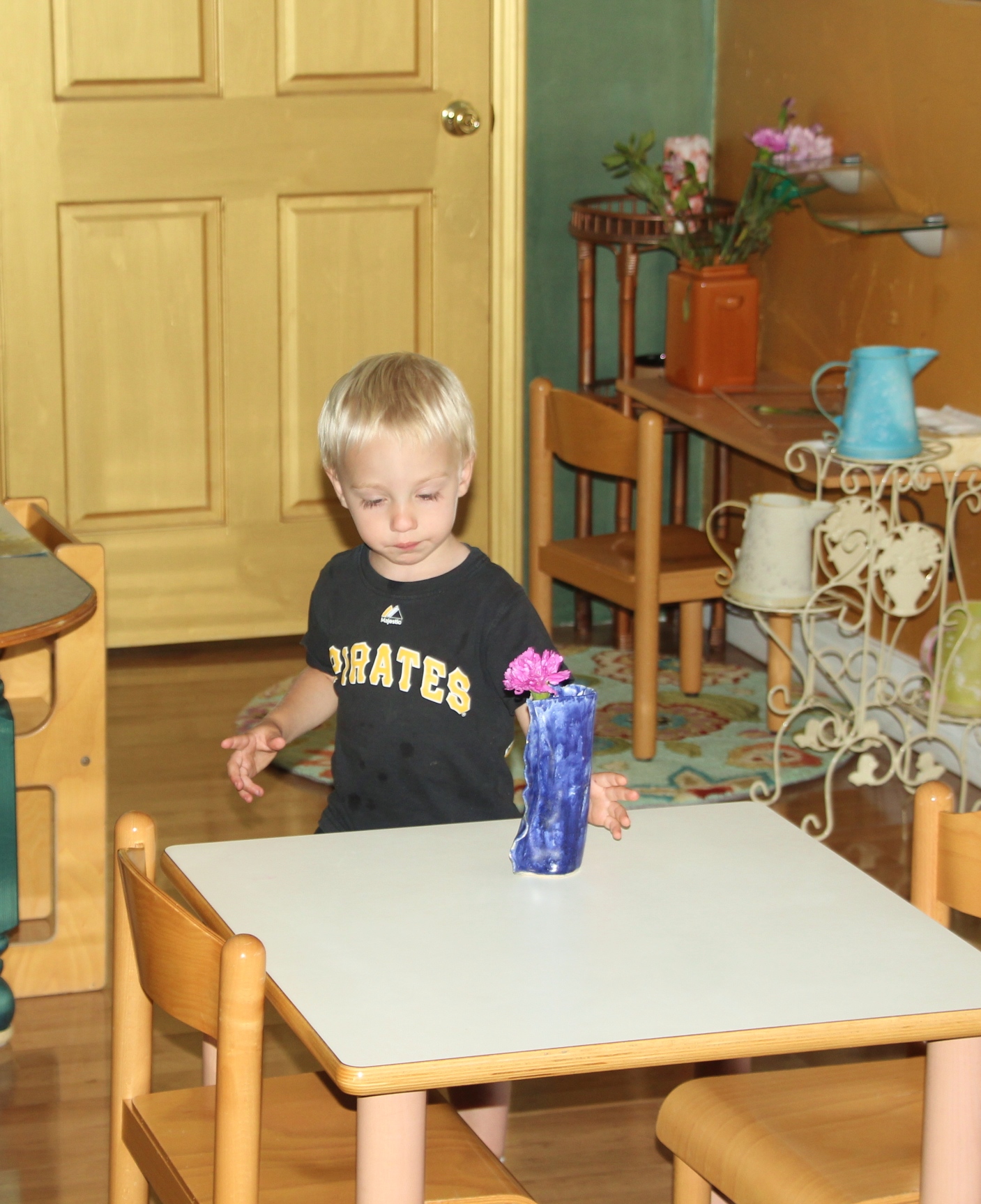 This week, our focus was not on lessons as we wanted to observe the children in action during the work cycle and see where their needs and challenges were. However, we did fit in a few lessons, such as flower arranging and how to use the “beginning sounds mugs,” which contain tiny objects for each letter of the alphabet.