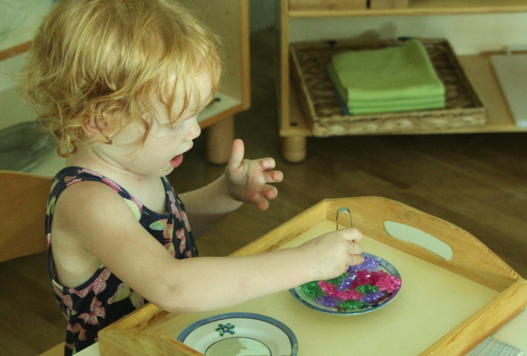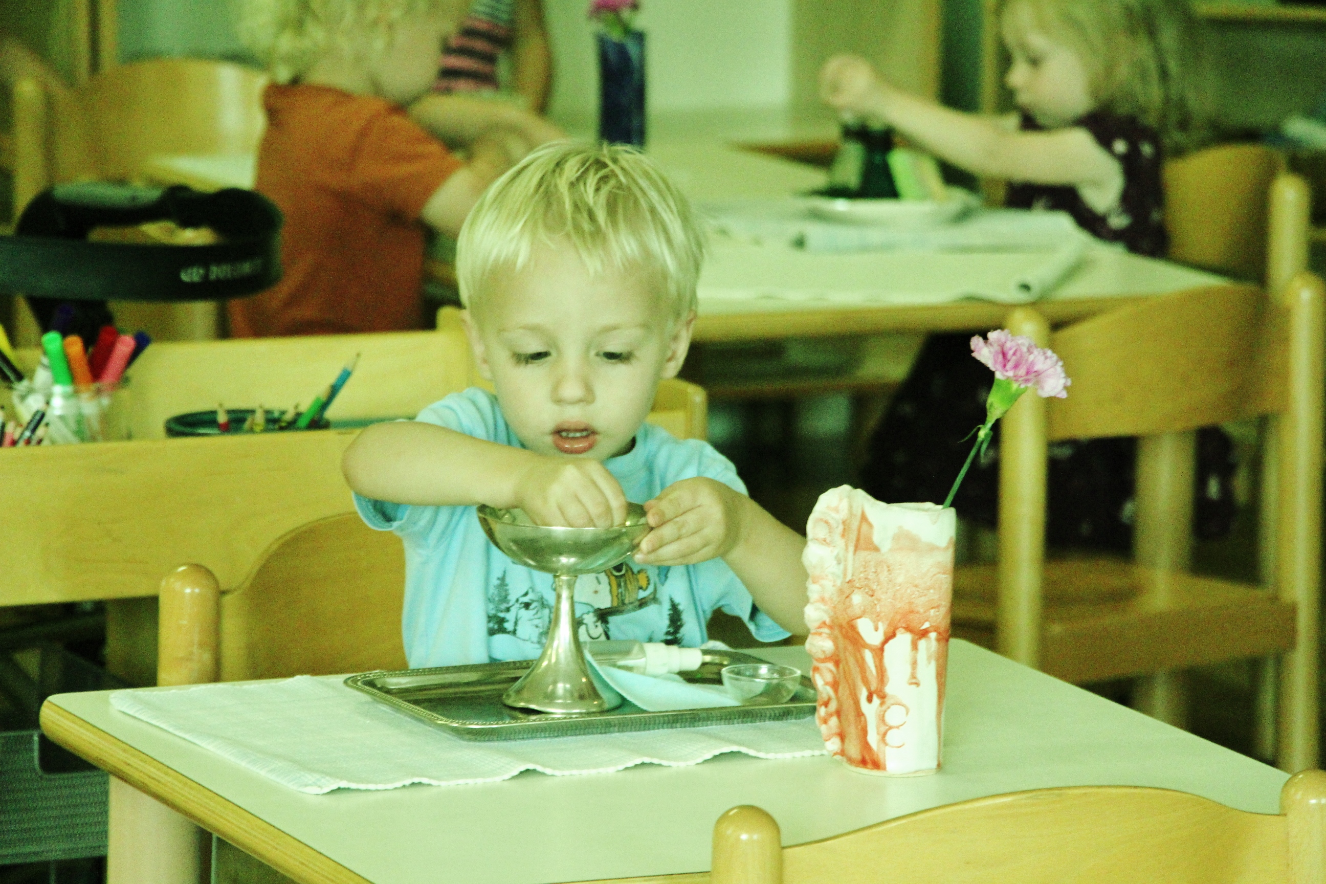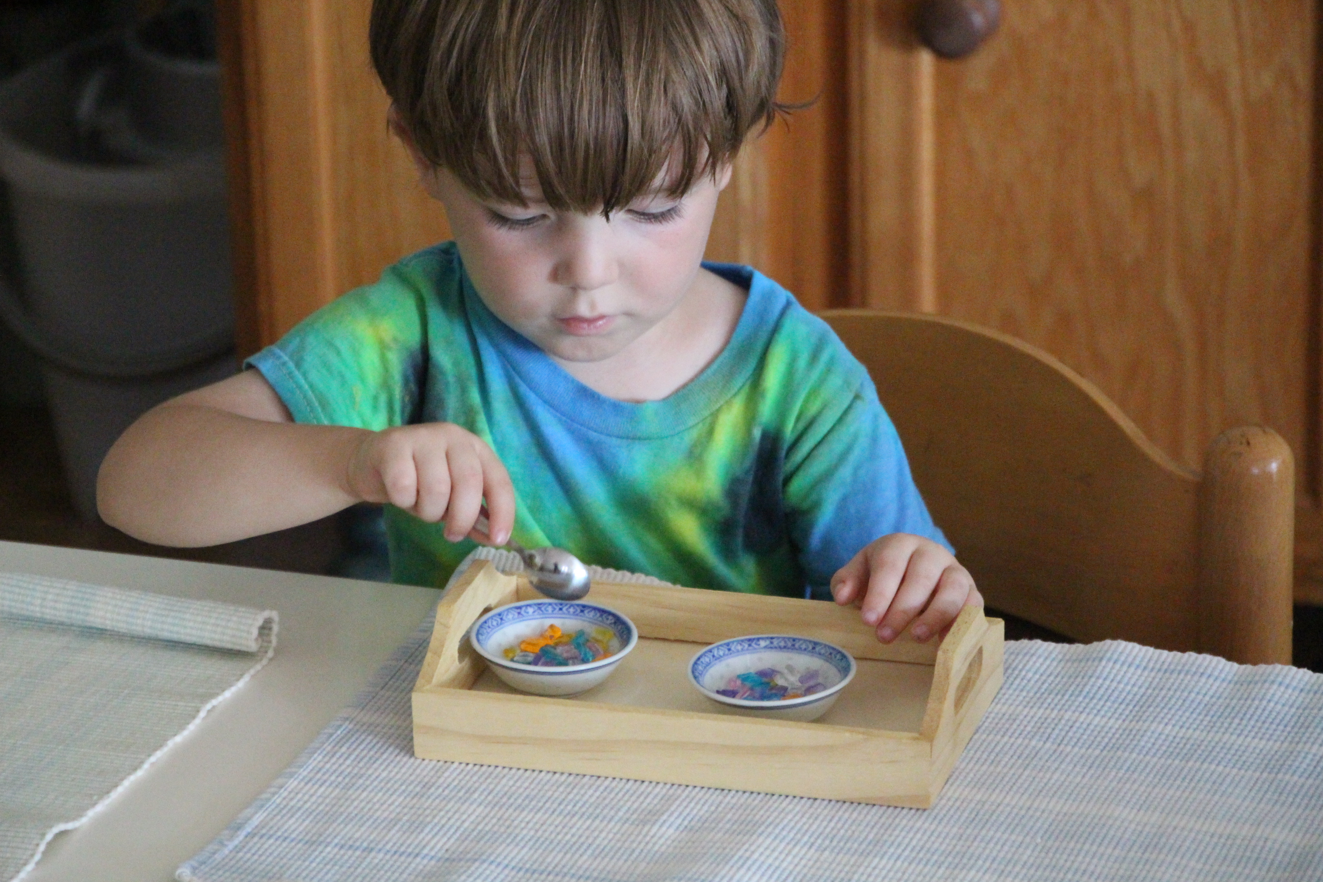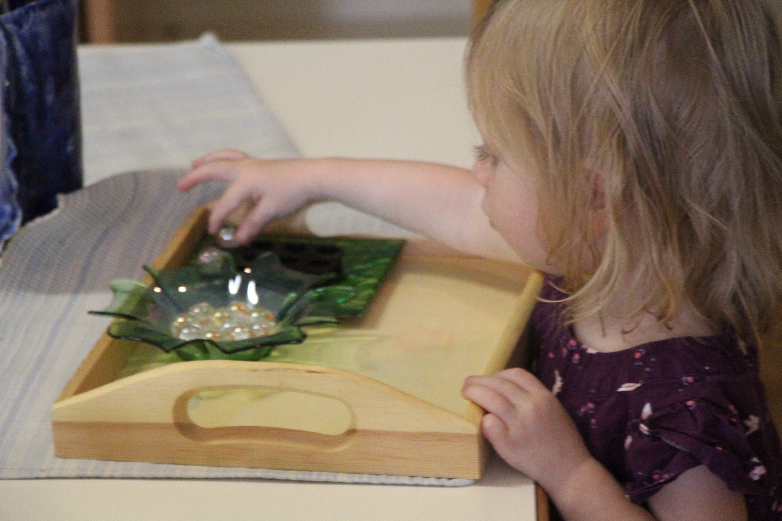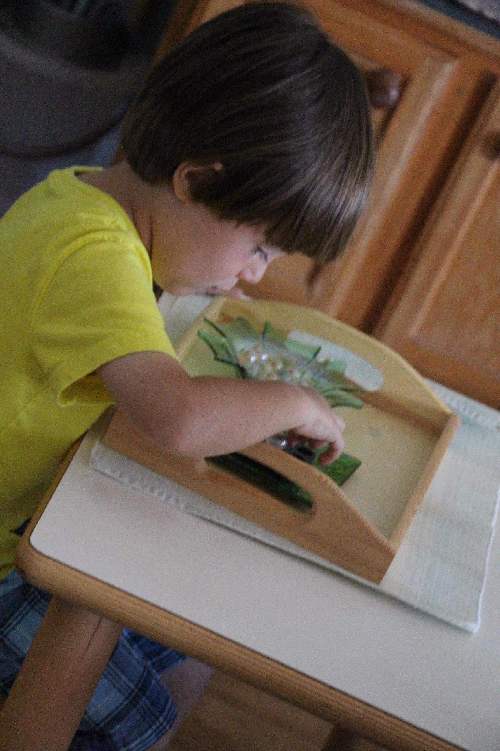 This week, our focus was not on lessons as we wanted to observe the children in action during the work cycle and see where their needs and challenges were. However, we did fit in a few lessons, such as flower arranging and how to use the “beginning sounds mugs,” which contain tiny objects for each letter of the alphabet.