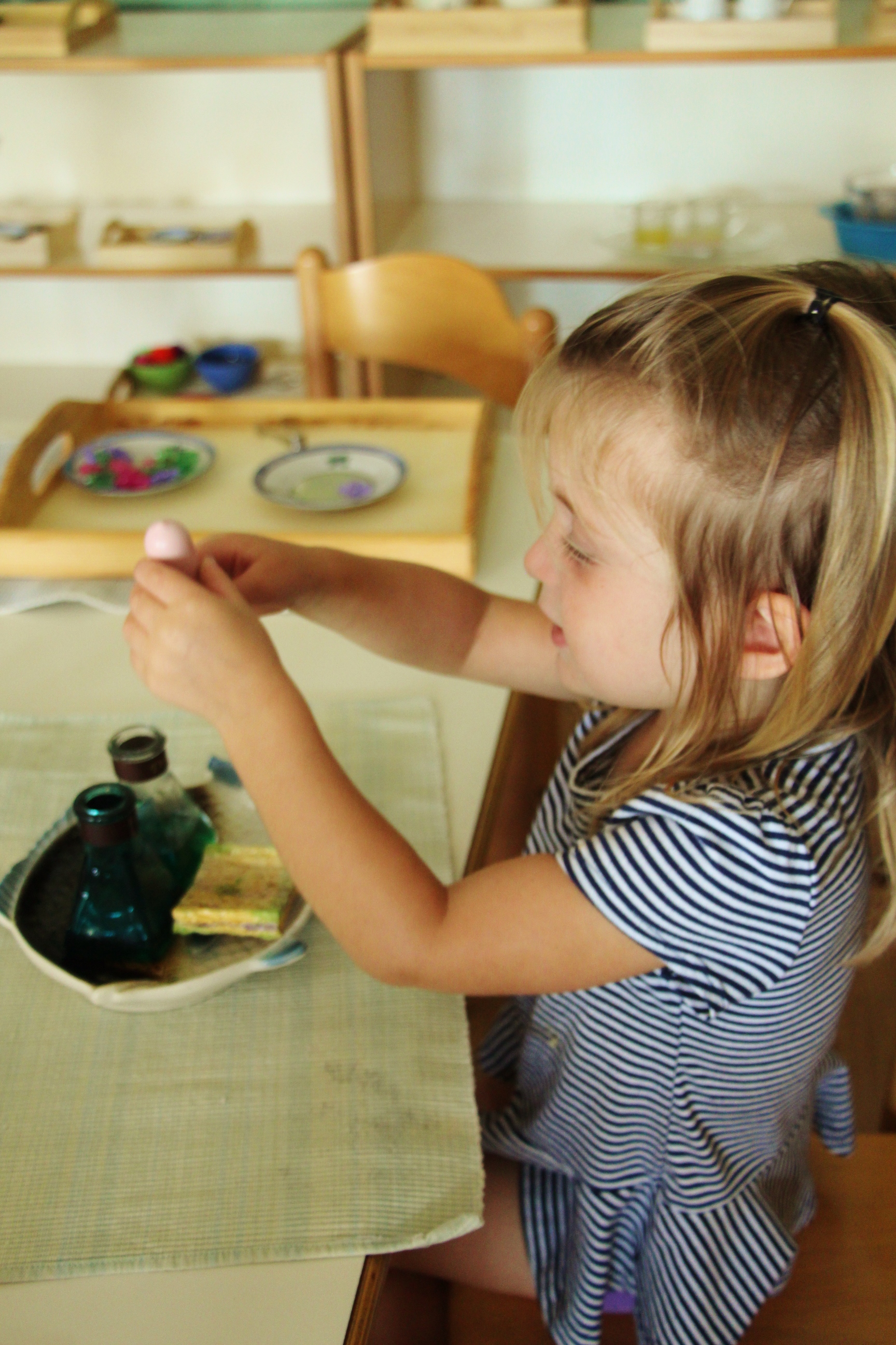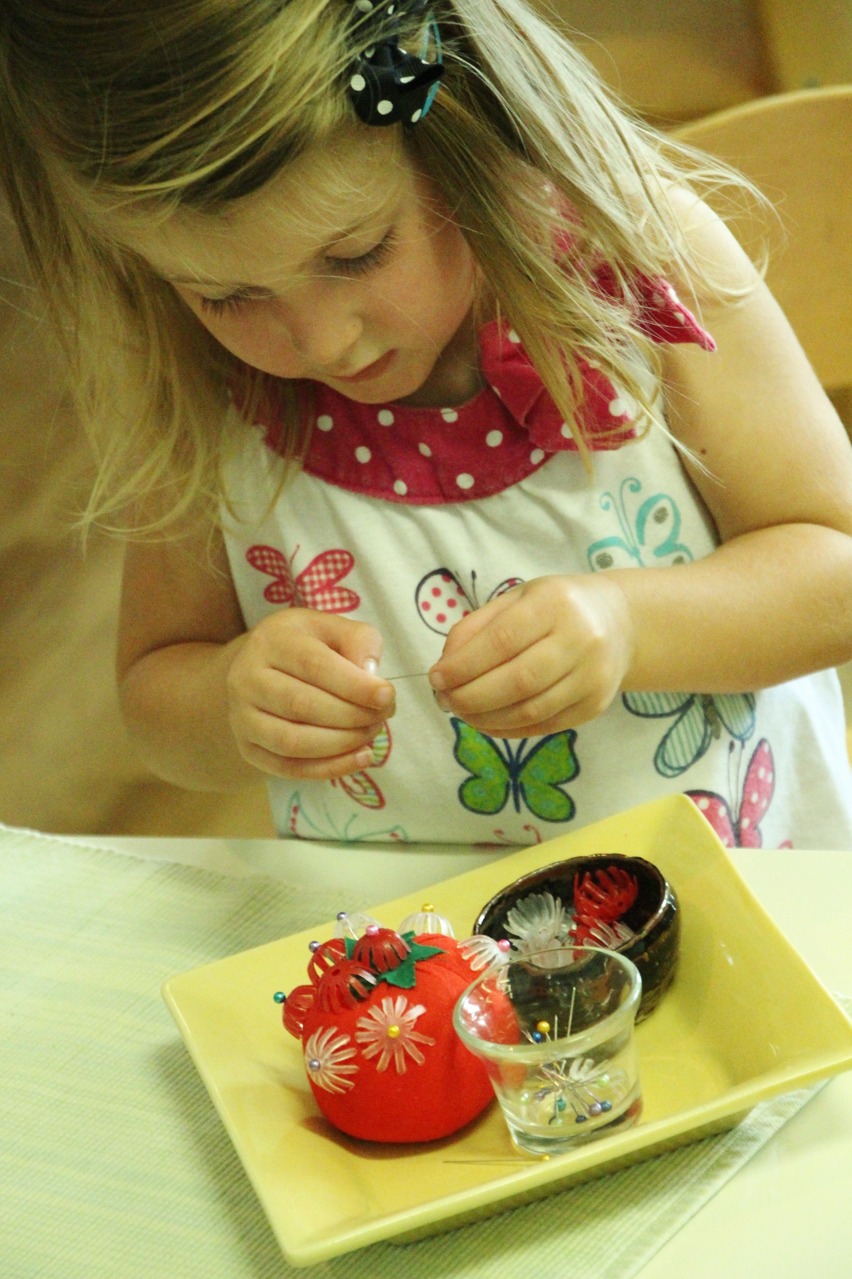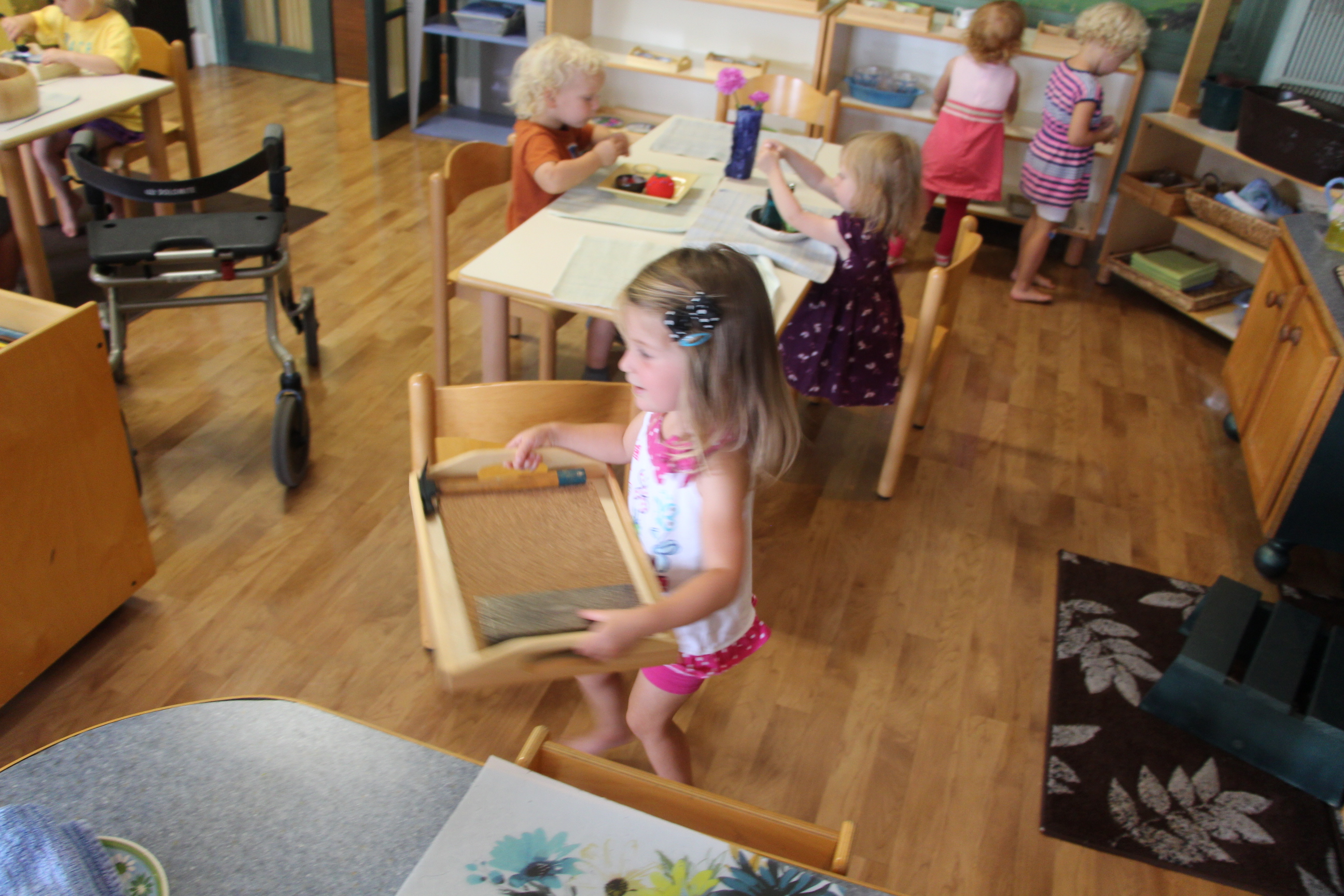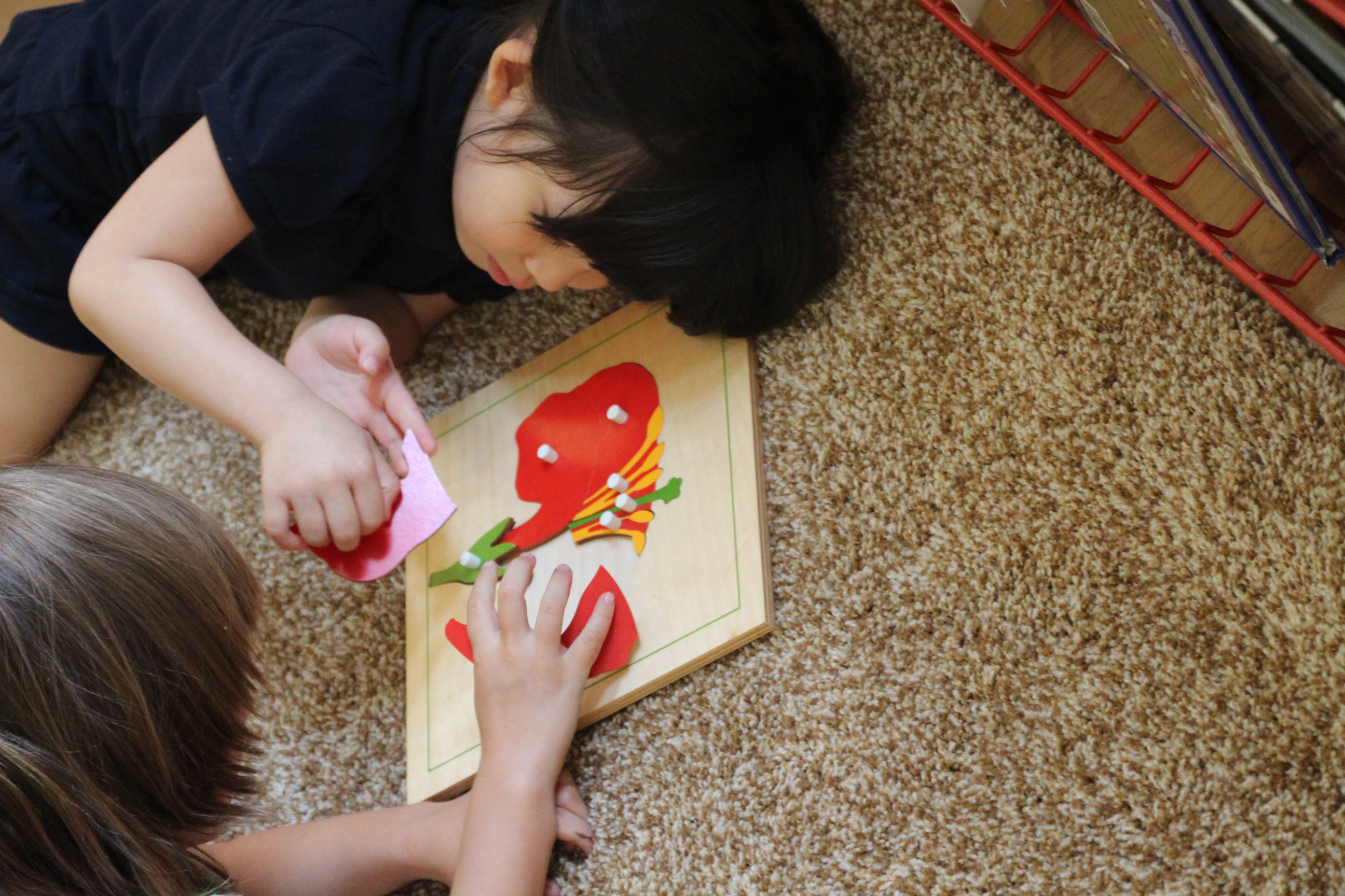 Though it was a short week, we were certainly productive here in the Primary Studio. We started Tuesday off with reviews of last week’s lessons, and gradually worked our way into some work cycles throughout the week. Carrie and I were happy to see how much information our students actually absorbed while utilizing the material, as they each showed determination to handle their work properly and carefully. Occasionally, we would remind the students of little things such as returning a rug or to straighten a work on a shelf, but we realize that our routine is a lot to take in at first. And needless to say, everyone forgets sometimes, but we have a lot of students who are great at reminding others if material is neglected and we also encourage our students to lend a helping hand. Overall, everyone did an excellent job at keeping the room tidy, returning work back to the shelves, and respecting the material. The kids were overall peaceful and productive during this “free time” to explore on their own.
