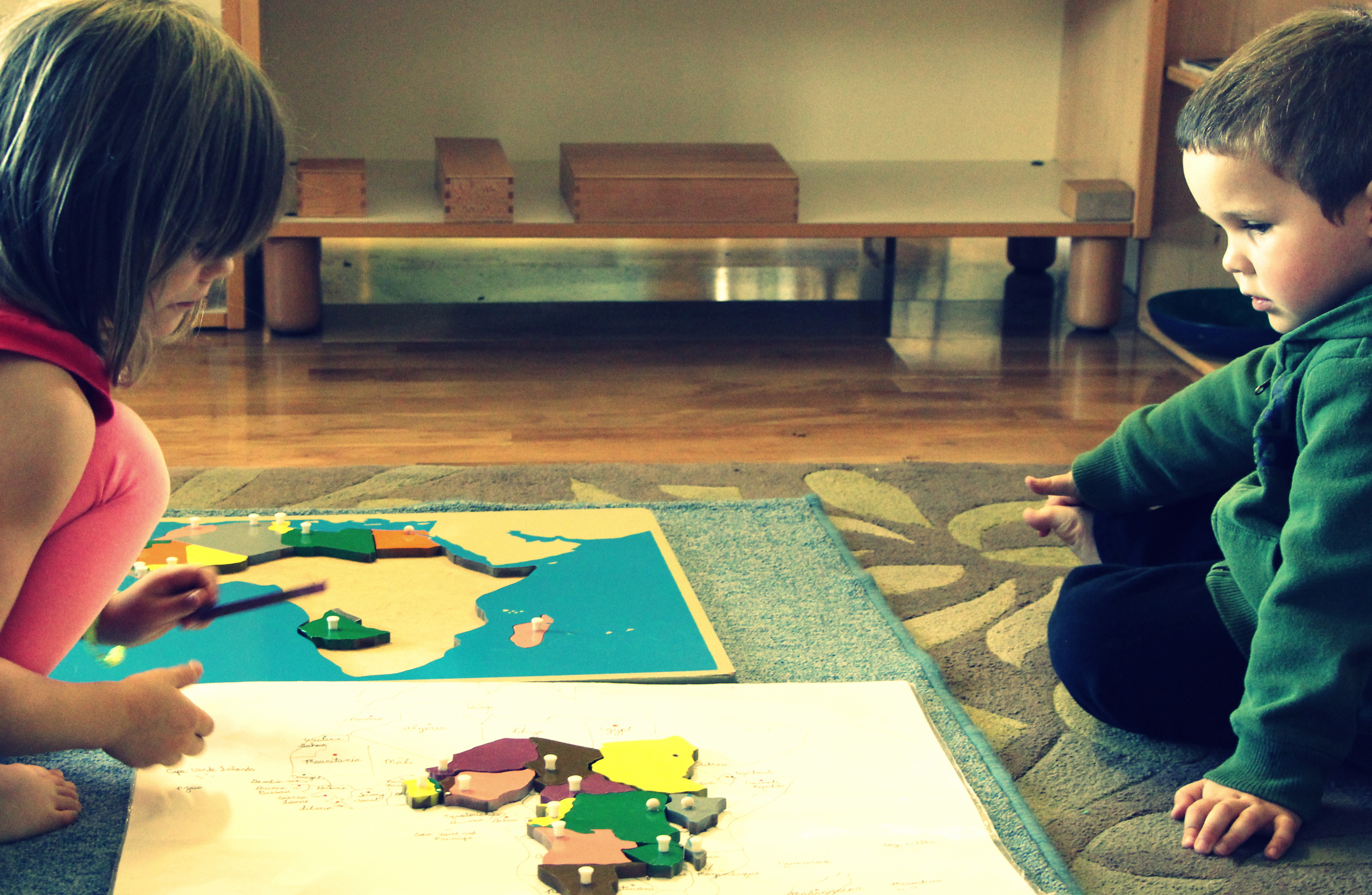 Here, Linnea presented a math work on division. She demonstrated to the kids how to “equally divide the birds up between their bird baths.” We were pleased with how attentive everyone was for her.