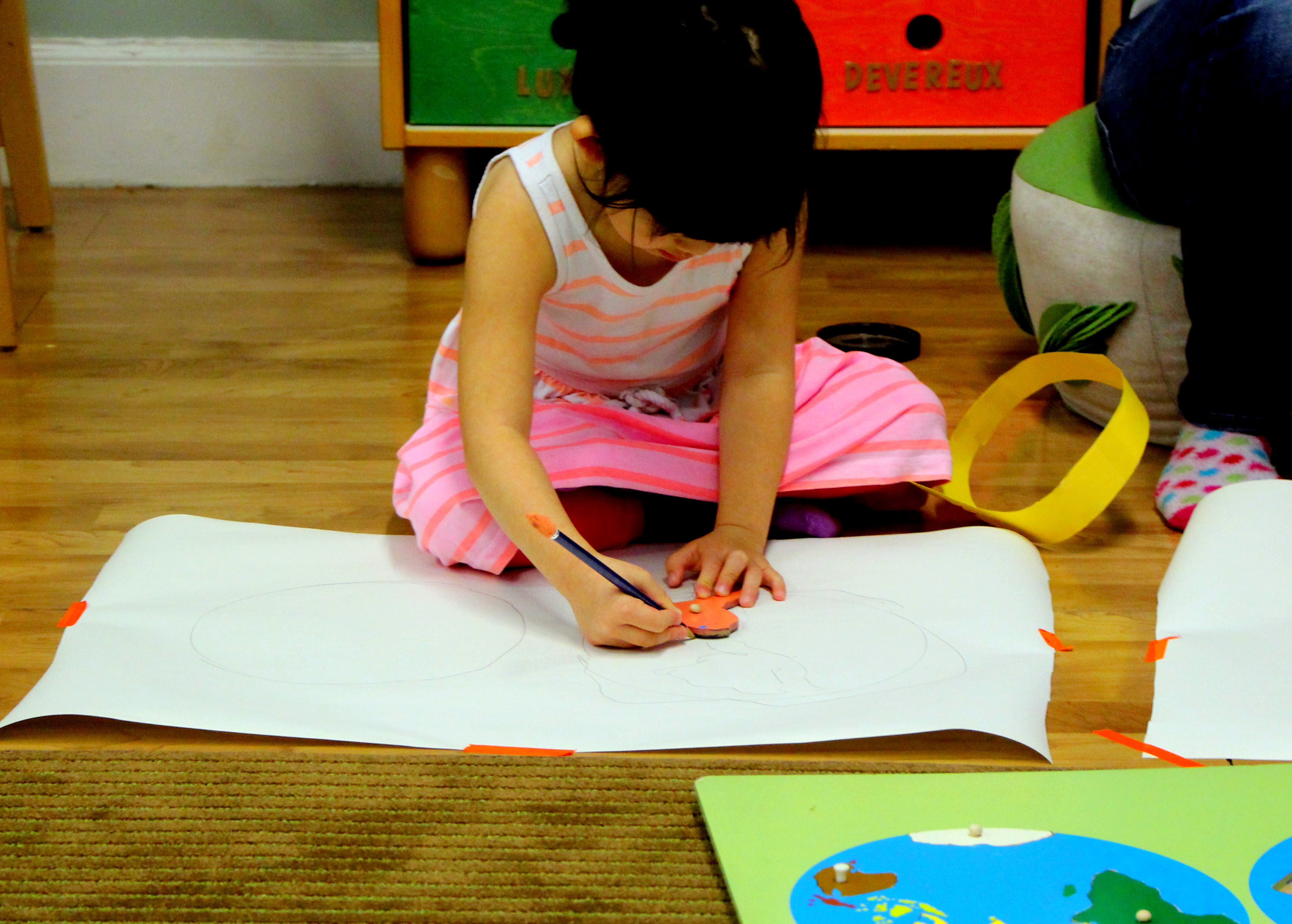 A number of students had fun drawing up the earth’s hemispheres to create their own continent maps by tracing the continent pieces from our puzzle maps.   It’s exciting to see how little help our students needed (or wanted) as they focused on getting the placement of each continent just right.