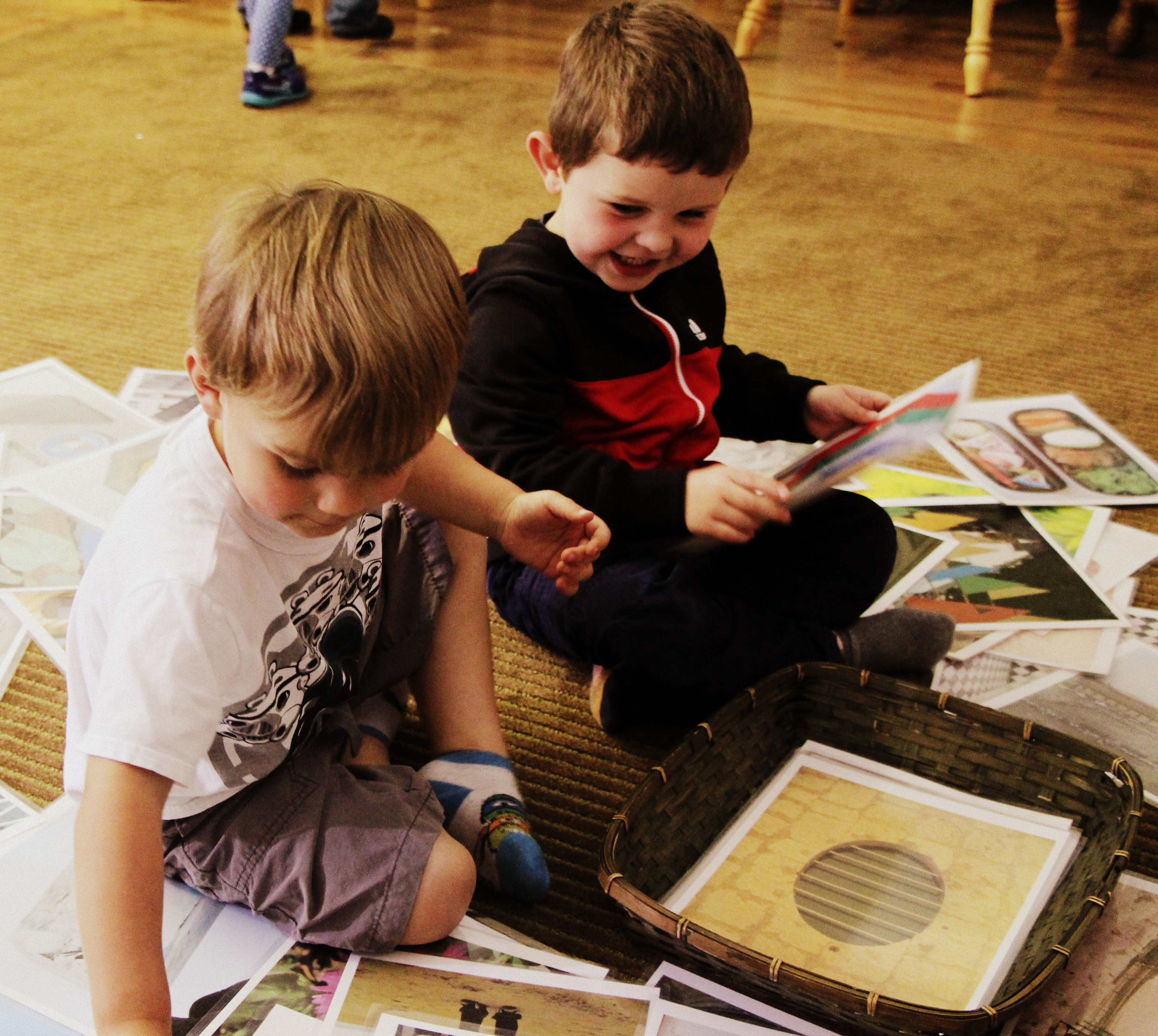 I have demonstrated a variety of extensions for storytelling material that has been available in the studio throughout the year in order to challenge the students to think out of the box. Storytelling is also an enjoyable approach to encouraging kids to work on their social skills, listening skills, and to expand their vocabulary.Imagery Cards: Throughout the school year, cards with unique photo imagery have been offered for children to sequence in their own ways in order to come up with original stories. Lately, we have been challenging our students to ask questions with “who, what, where, when, how, and why” when describing imagery to tell a story. Further more, I have been teaching a variety of words to express how one might be feeling.