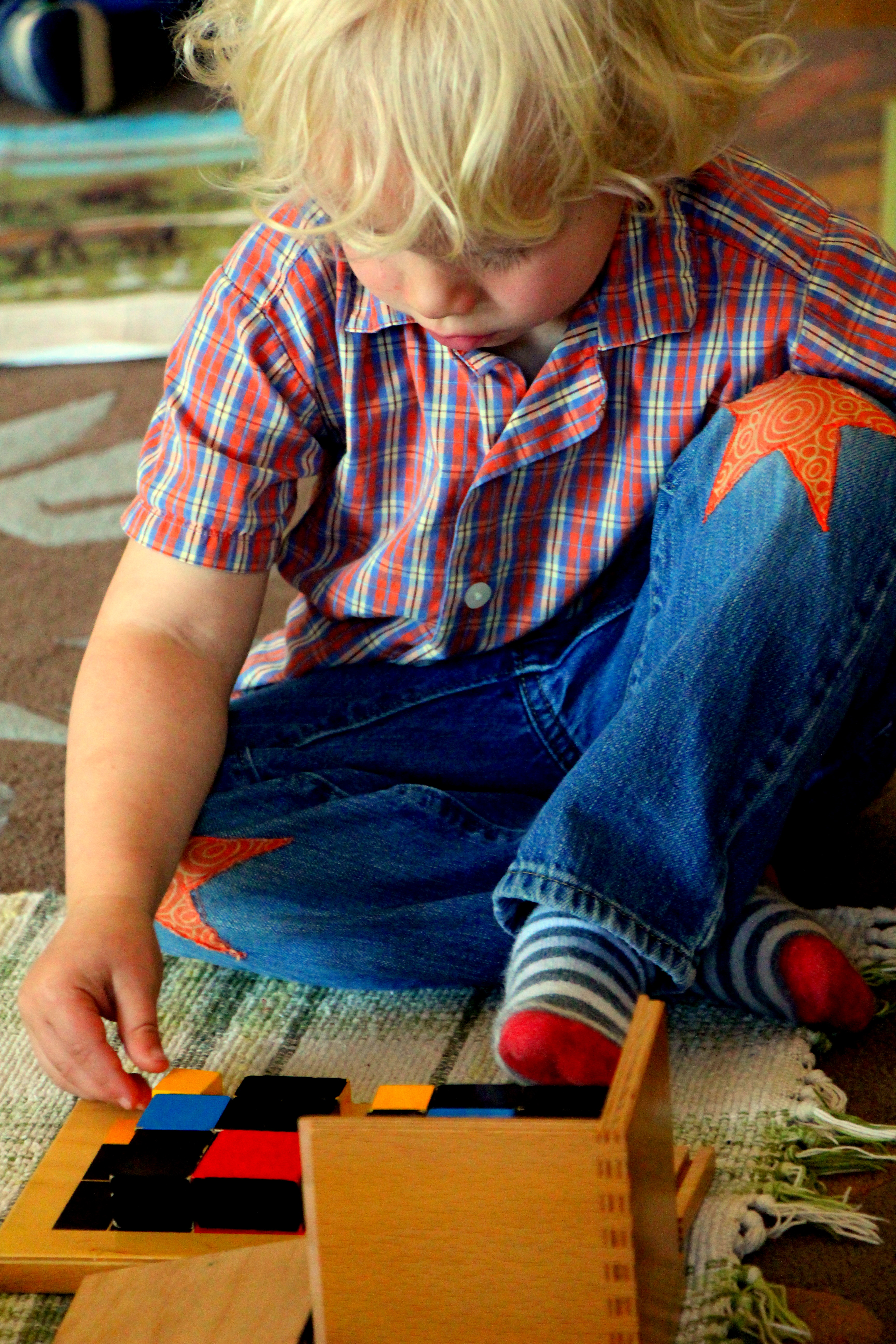 One example happens during circle times: I explain the words and then the students take turns to act out how one might appear or behave if they were heartbroken, relaxed, nervous, saddened, irritated, embarrassed, peaceful, frantic, humble, etc. We teachers especially begin to see our students using some of these words as they are telling stories with the imagery cards during work cycles. It’s like music to our ears when Carrie and I hear the kids working constructively like this together, taking turns explaining what they feel should happen next in the story, expressing their thoughts and feelings with each other.
