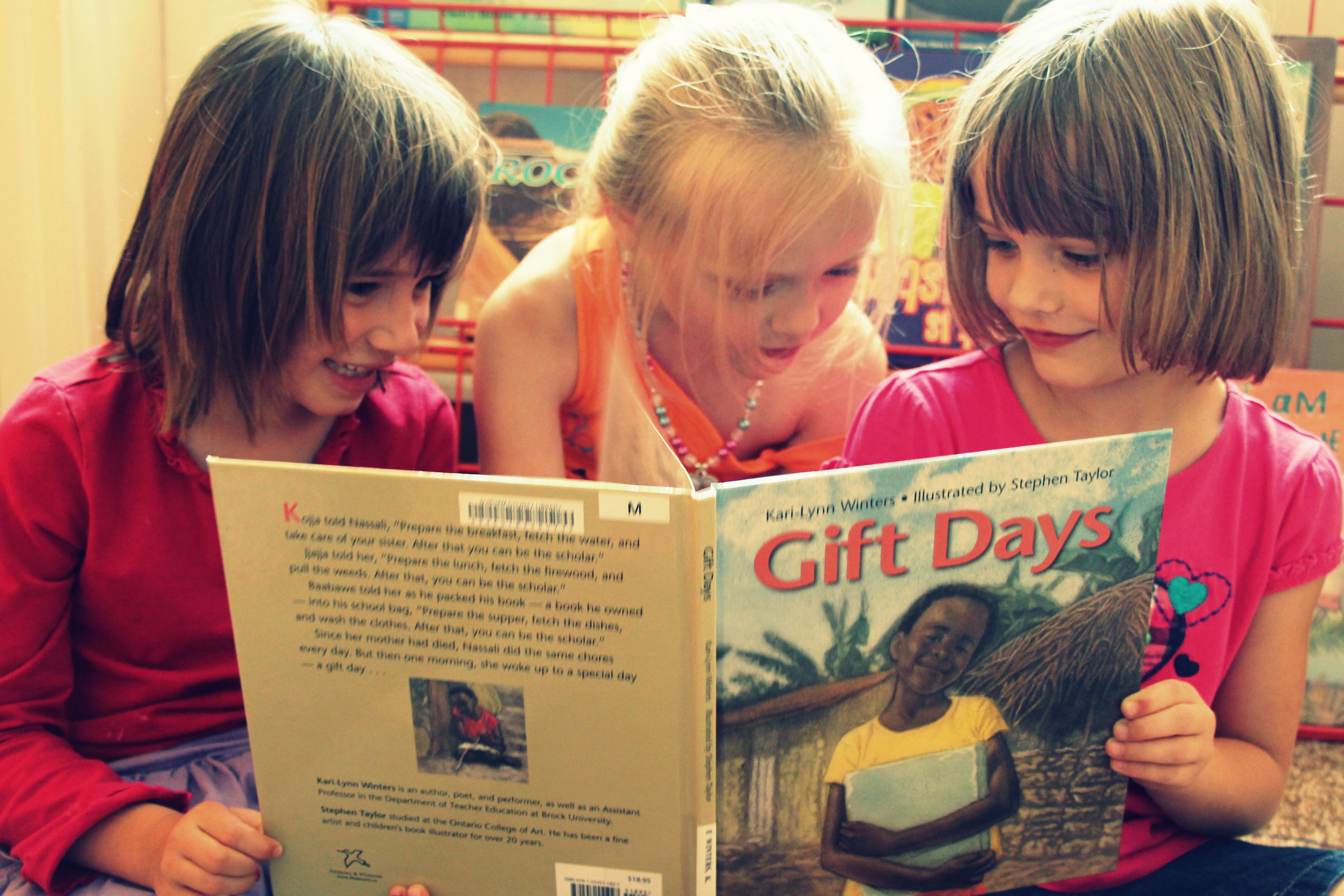 I try to be very careful on these topics as I don’t want to share information in a way that would frighten or discourage my students, so I usually take time in advance to prepare what exactly I am going to say. There are not enough children’s books on these topics, so I often find myself taking books from the library that are for much older children, read the book to myself, and then reword the entire book for my students to better comprehend in simple terms. I find that when real issues are carefully brought to the attention of these youngsters, the awareness humbles their spirits and brings out thoughtful conversation. This year, I discovered the book Gift Days, a story about a young girl in Uganda who was left with responsibilities to look after her family after her mother died (of a disease that I did not mention, because I did not find it to be a topic that I could reword lightly and I wanted to focus on the positive). The story is about the girl’s desire to be educated and to go to school while she had no time or money to do so. She eventually finds a way to educate herself with the help of her brother who took on some of her chores. We had a couple of discussions on this topic that lead to what we are thankful for, how fortunate we are to have the right to an education, and how organizations are helping kids like the ones in the story. The kids have plenty of questions and we do our best to answer them in a positive and hopeful way. I just want you to be assured that when I introduce serious topics that can sound scary, I always take a lighter and simpler approach. Overall, it’s meant to be a humbling experience that helps students appreciate more in their own life.
