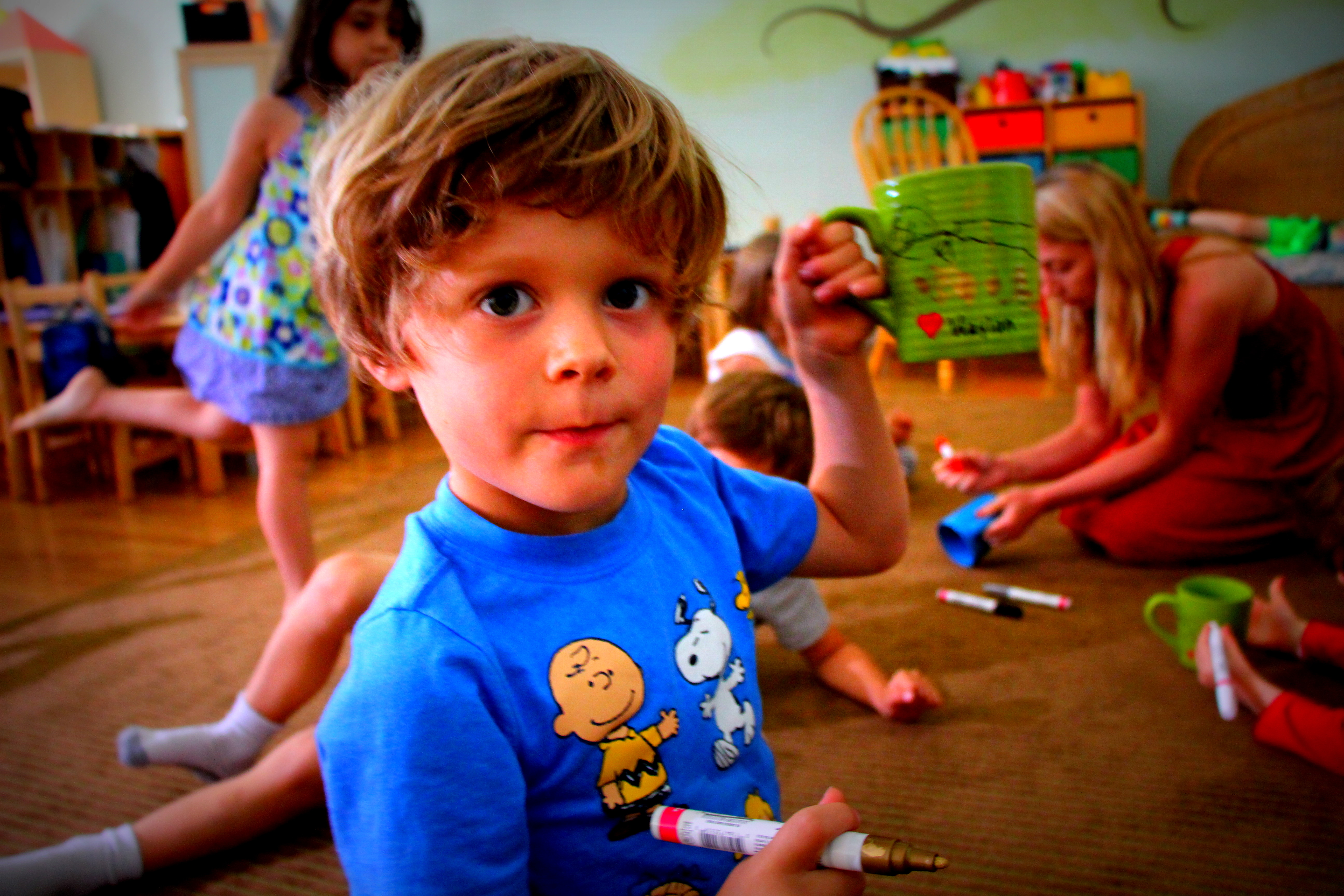 Let’s backtrack just days before the father’s day celebration to learn just how much your kids looked forward to this event. After such a lovely time with moms, the kids were so excited to have yet another celebration for dads. During the week, they took turns in small groups to prepare their gifts. Carrie set up a little work station on the floor where they used oil based markers to draw pictures on mugs for their dads. Afterward, Carrie baked the mugs in the oven to ensure that their artwork would last a while.