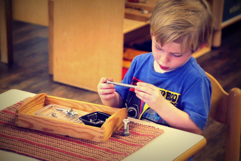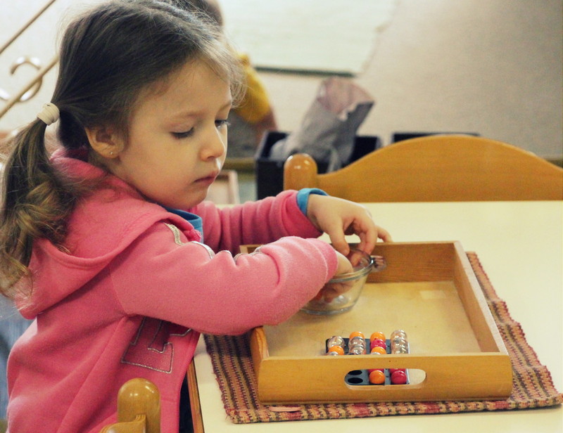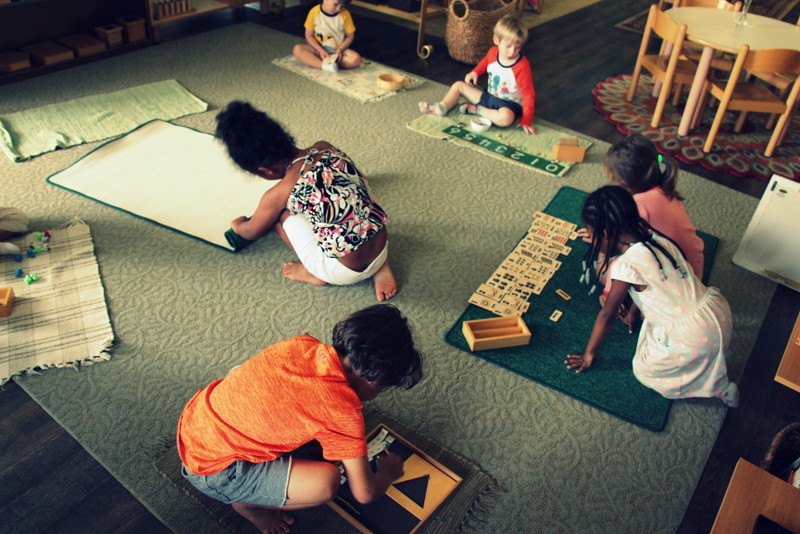 Work cycles continue to happen on a daily basis, a time when our students can explore and work on material that they have had lessons on. This is typically a peaceful and productive period where children work independently and in small groups. While working independently helps children to focus and refine their motor skills, working with others requires patience as children practice their social skills to take turns and problem solve with one another. The image below is an example of various students working at their own pace with no interruptions. They take their time and thoughtfully work on material, and when they are finished, they clean up after themselves and put the material way in it’s special place.
