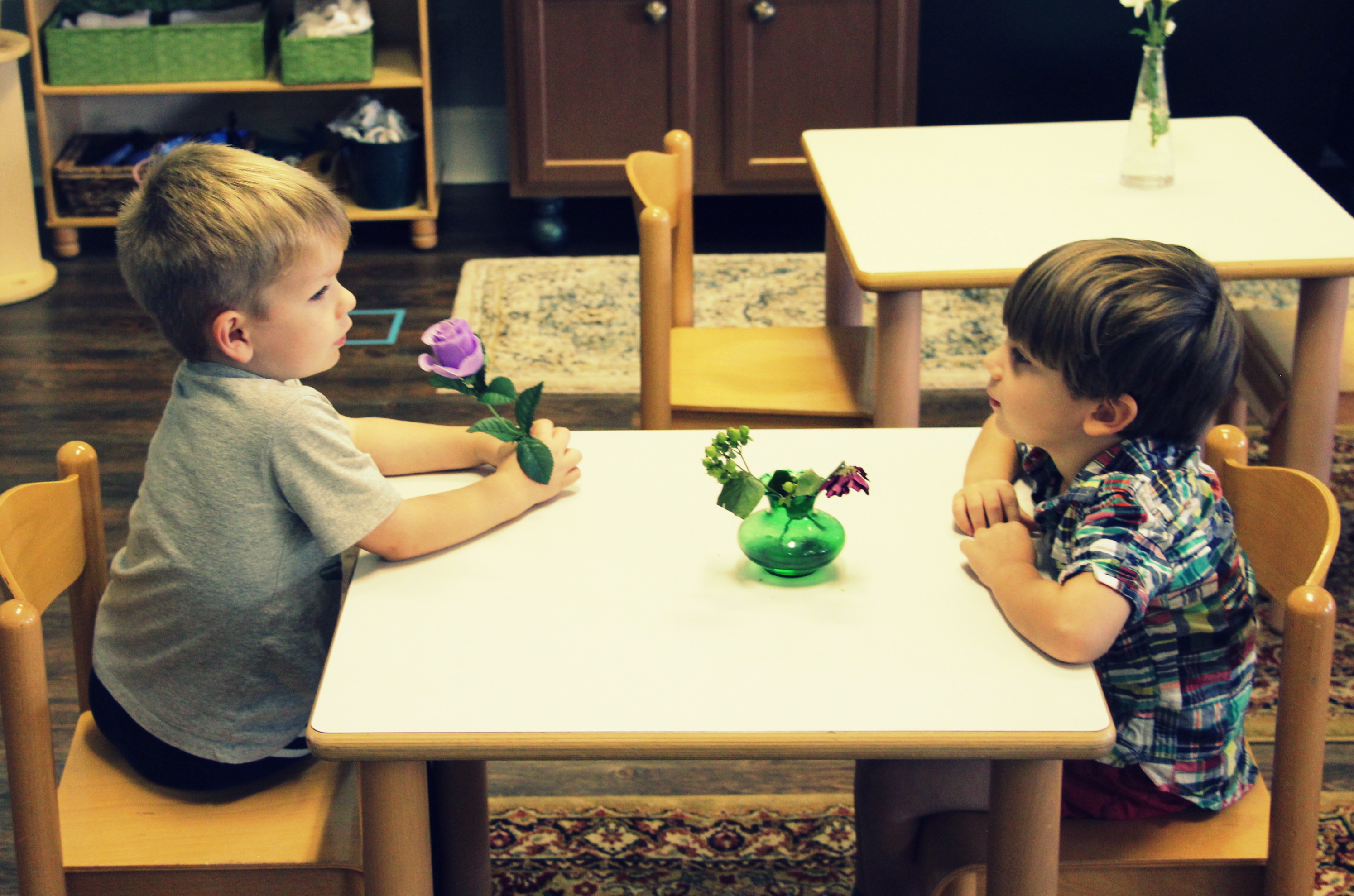Yesterday, I observed Nate and Nico from a distance as they decided to take a break from their work to sit at a table and converse with one another with the peace flower. No teacher prompted them- they simply chose to take a moment and communicate peacefully with each other, and then they went right back to working alongside each other during the work cycle. It’s great to see our students showing respect for one another and using their words!