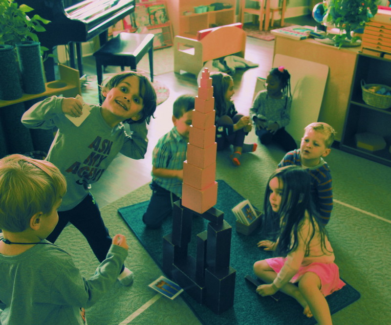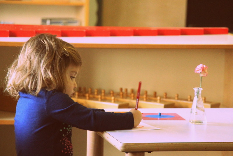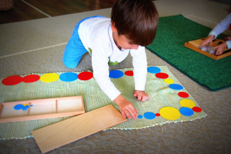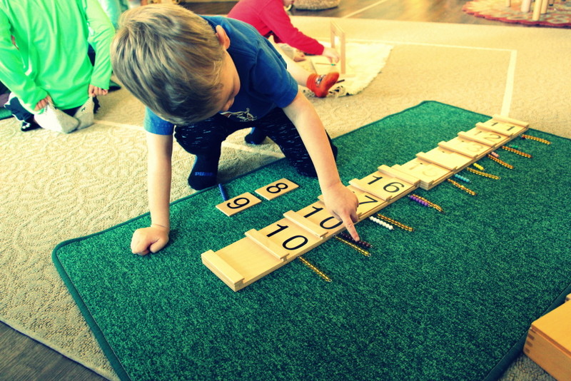 The red rod maze is an extension to the red rods sensorial material that is for sorting in order from shortest to longest, and the number rods in the math area are similar, used to learn how to count from one through ten. Many of our students have a good grasp on their dimensions with order and they have now been shown to build a maze by starting with the shortest rod and building out and around to make a path that they can carefully walk through by placing one foot in front of the other.