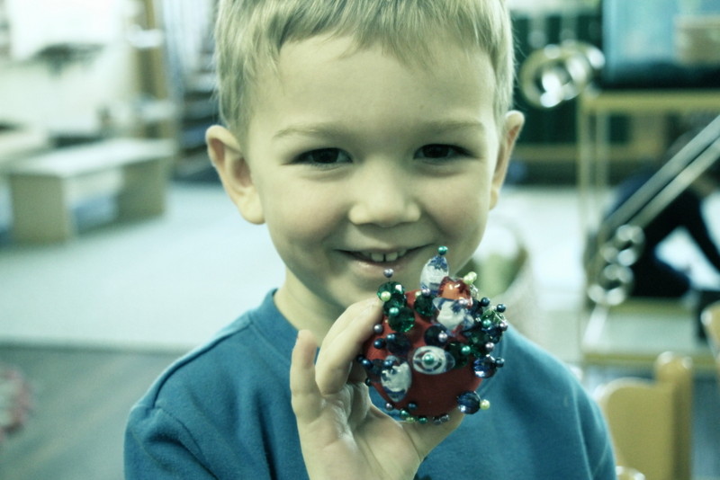 Handling Sharp Objects. After having lessons on how to carefully use our sharp objects to create decorative art, our students always feel privileged that we trust them to be very careful with material that most other kids aren’t “allowed” to use. Handling push pins and ball-head sewing pins takes mindful coordination in those little fingers, helping your child to naturally hold their fingers together in the pincer grip. During the new year, I will be introducing simple sewing techniques again.
