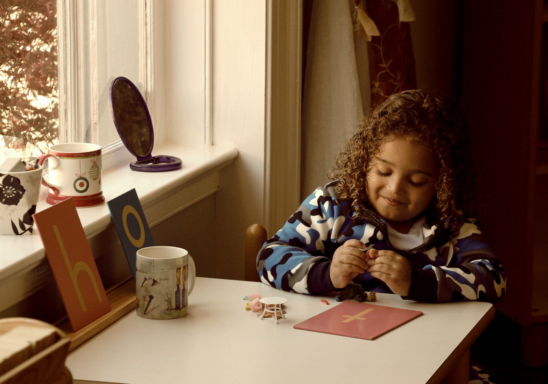 Beginning Sounds Memory Game. For students who already know a handful of beginning letter sounds, I like to play memory games with them as they are introduced to a few more letter sounds at a time. I like to lay out a few sets of imagery cards on the table, and the kids can rotate around the table like musical chairs to try to sort each set. How the activity works: Ahead of time, I have placed our wooden beginning sounds letters under each image, and then I sit down with a child and quickly go over the images and letter sounds with the student, asking them to repeat after me. Then, I mix up the letters in front of them and ask the child to see if they can remember the beginning sounds of each image and place them with the appropriate image. Sometimes kids also like to write out or trace the letters after they have done the matching.