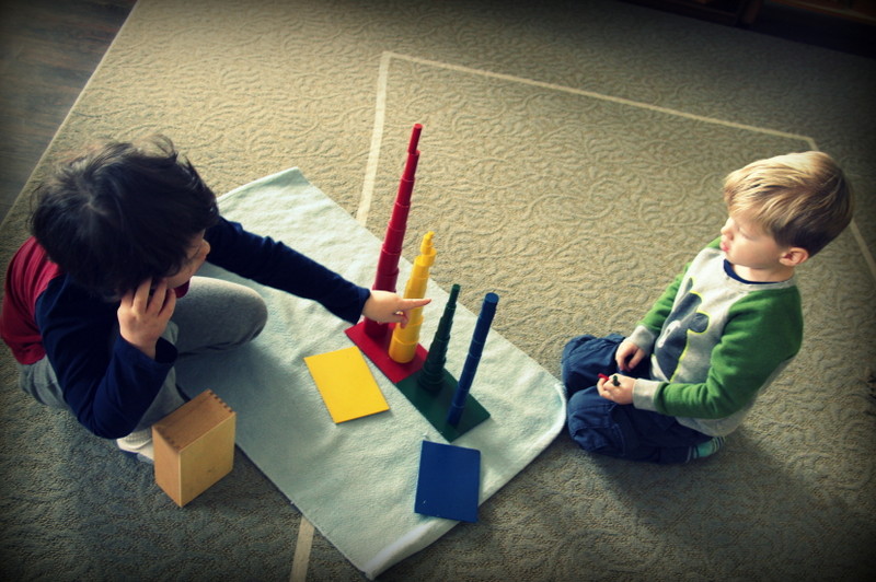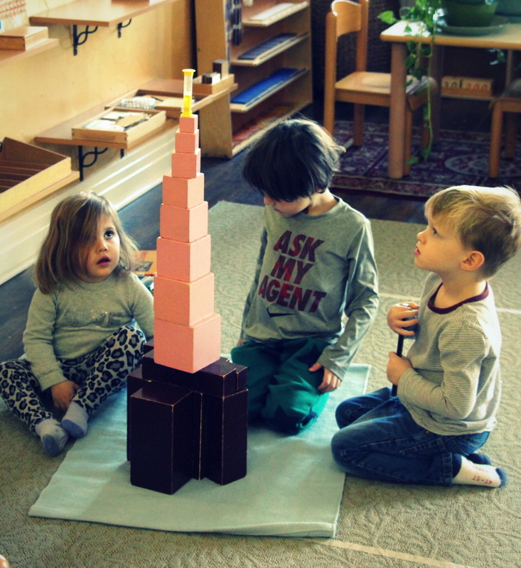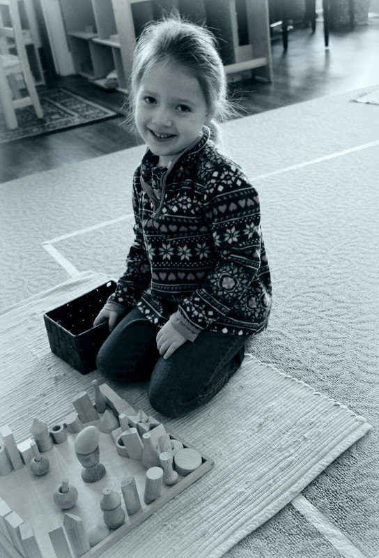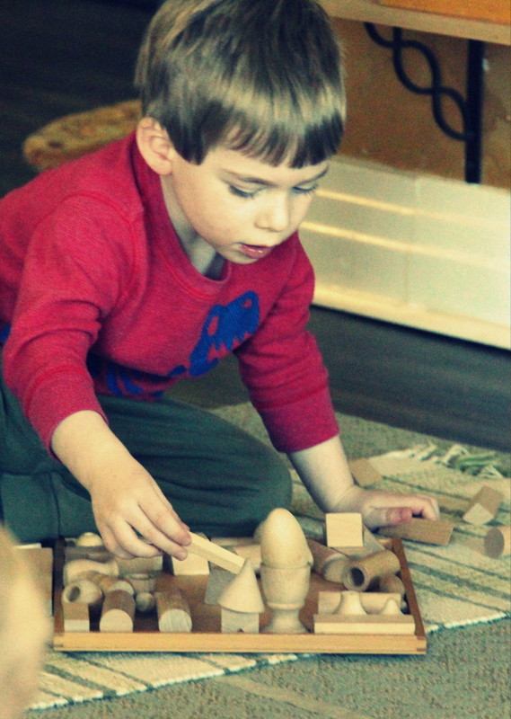 As many of you know, we have a variety of shapes and geometric solids throughout our sensorial area. Children love to work together and teach each other about shapes, grading our geometric solids, building little structures, and so on.