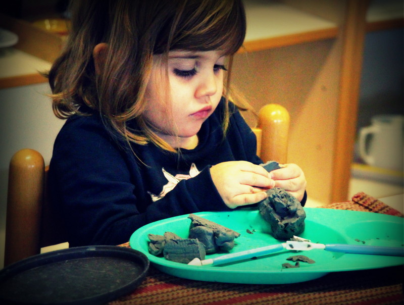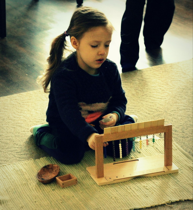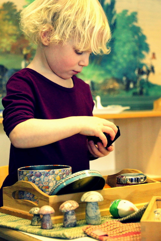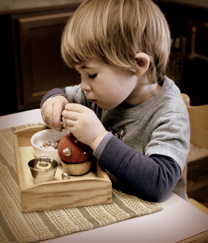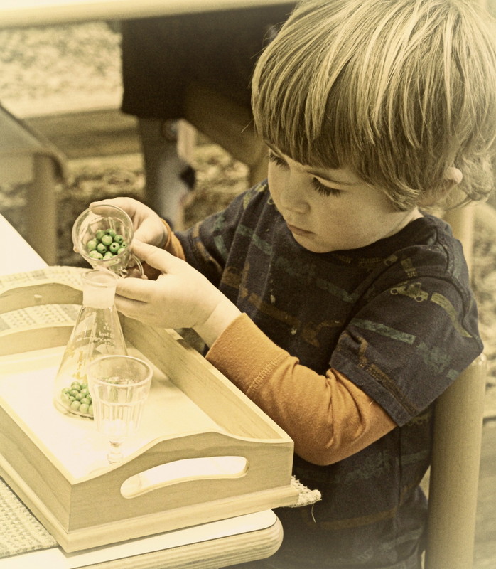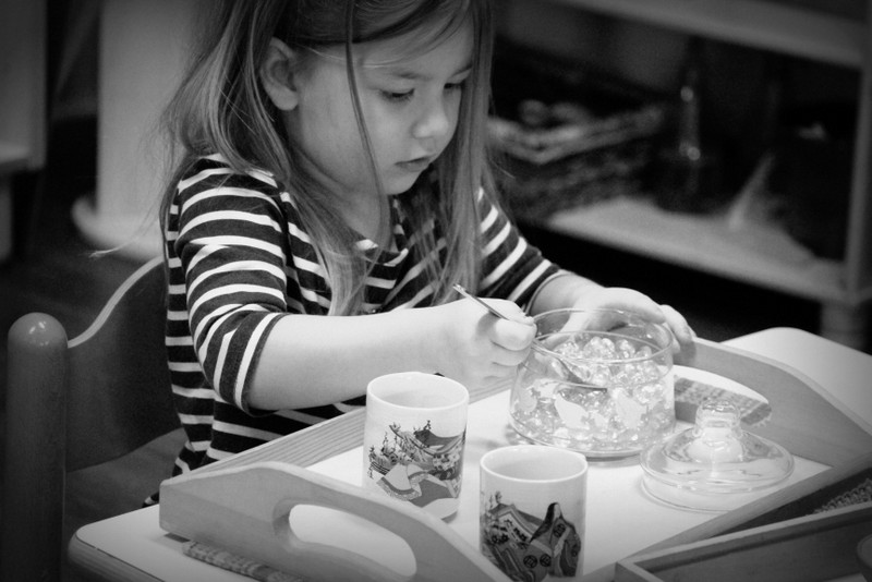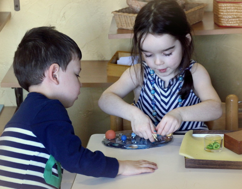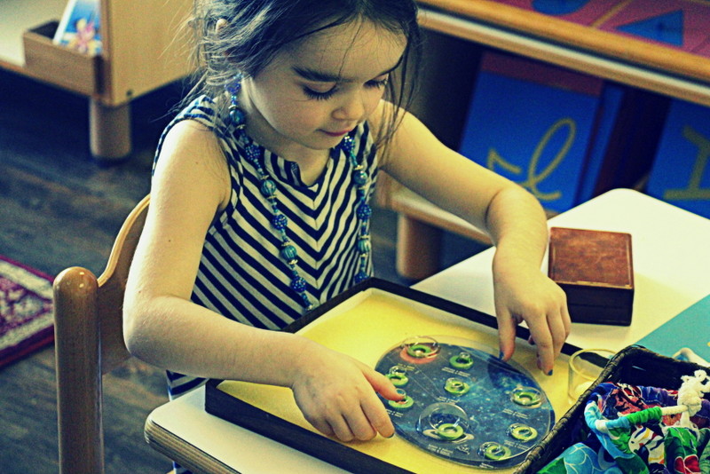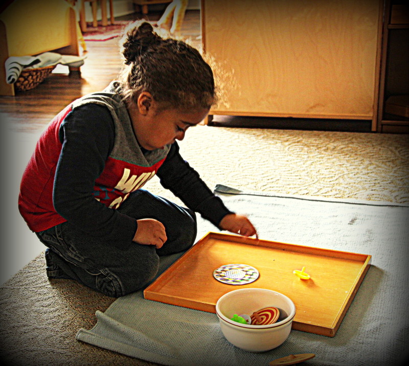 Below: Our students have ongoing lessons in our practical life area as we change out the material on a biweekly basis to draw in their interest, keep them challenged, and to exercise those fine motor skills.
