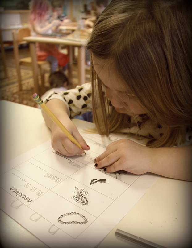 At this time of year, our “senior students” are especially practicing tracing, writing, retaining their knowledge of beginning sounds, and word building. We meet with all students who are planning to “graduate” this year in a small group and go over language lessons several times a week. Some of our oldest students are reading beginner reader children’s books on their own, with a friend, or to each other. We don’t expect them to figure out word for word, but they often surprise us. It’s an ongoing process to begin learning all of the different letter sound variations. While we’re still working closely with our oldest students to give them the best head start we can offer, we are very proud of how much they have accomplished over the years with us in the Primary Studio. We feel confident that they are super prepared for their journey onto the next school.
