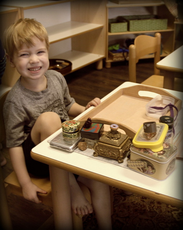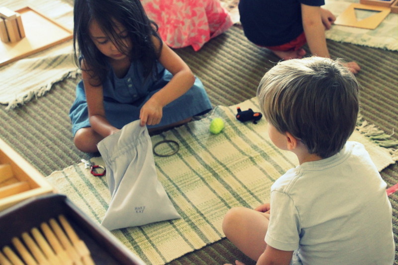 We offer more intimate lessons during the actual work cycle. Often times, we take turns as one teacher oversees the classroom and another teacher sits down and works in very small groups. Here, Anisa is giving a lesson that requires matching scents such as peppermint, tea tree oil, and lavender.