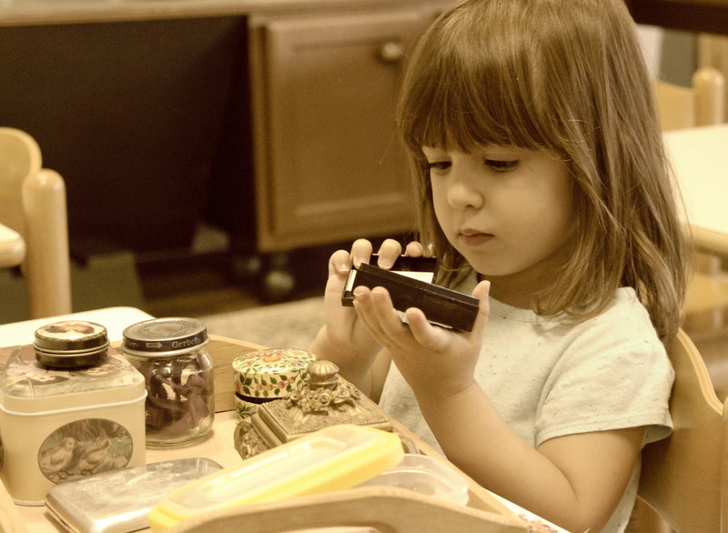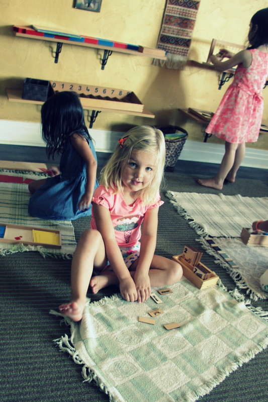 Unlike many traditional schools and daycares that have play stations, children don’t have to share all of the time in the Montessori environment. Through role play, we teach them nice words to say to their approaching peers, i.e., if they prefer to work alone. For example, let’s say a child named Bobby is working on a material all alone, and a child named Jenny comes over and says, “can I work with you?” Bobby would smile back and say, “I would like to finish this puzzle by myself right now, but maybe we can do something different when I am finished,” or “I will come find you when I am finished with this work, and together we can choose something new to try out,” and so on. We encourage our students to be positive to those who want to work with them, and we want them to keep in mind that the approaching child is simply asking to join because they feel comfortable with that particular peer. We encourage those who choose to work independently to be kind to the child asking to join by giving that child some hope, (which also prevents the chances of a child from getting upset or from having a major meltdown), and that child is happily redirected with the positive response, leaving the other child to finish their work independently. Unlike big play areas at other schools where a huge bucket of blocks or connector toys are offered for all to join in, we have many small and intricate “works” that often require organizing, sorting, and solving a puzzle. We do not have replicas of any works, because each work is special in itself, and this is yet another Montessori approach for teaching children how to be patient. Of course, there’s nothing wrong with the “sharing always” approach, and I think it’s great for kids to get a little bit of both worlds. That said, children do share constructively in small groups during work cycles. The difference is, we make it their choice when they prefer to work alone or with others. When a child is working individually, this can be very self-satisfying as they accomplish the goal completely on their own. We hear a lot of children saying “I did it!” as they take pride in their new skills and abilities. Typically, you see children periodically going in and out of small groups throughout the work cycle, and they have a healthy balance between working with others and working independently throughout the work cycle. On that note, I’d like to leave you with photos of your beautiful children working on a variety of material during work cycles…