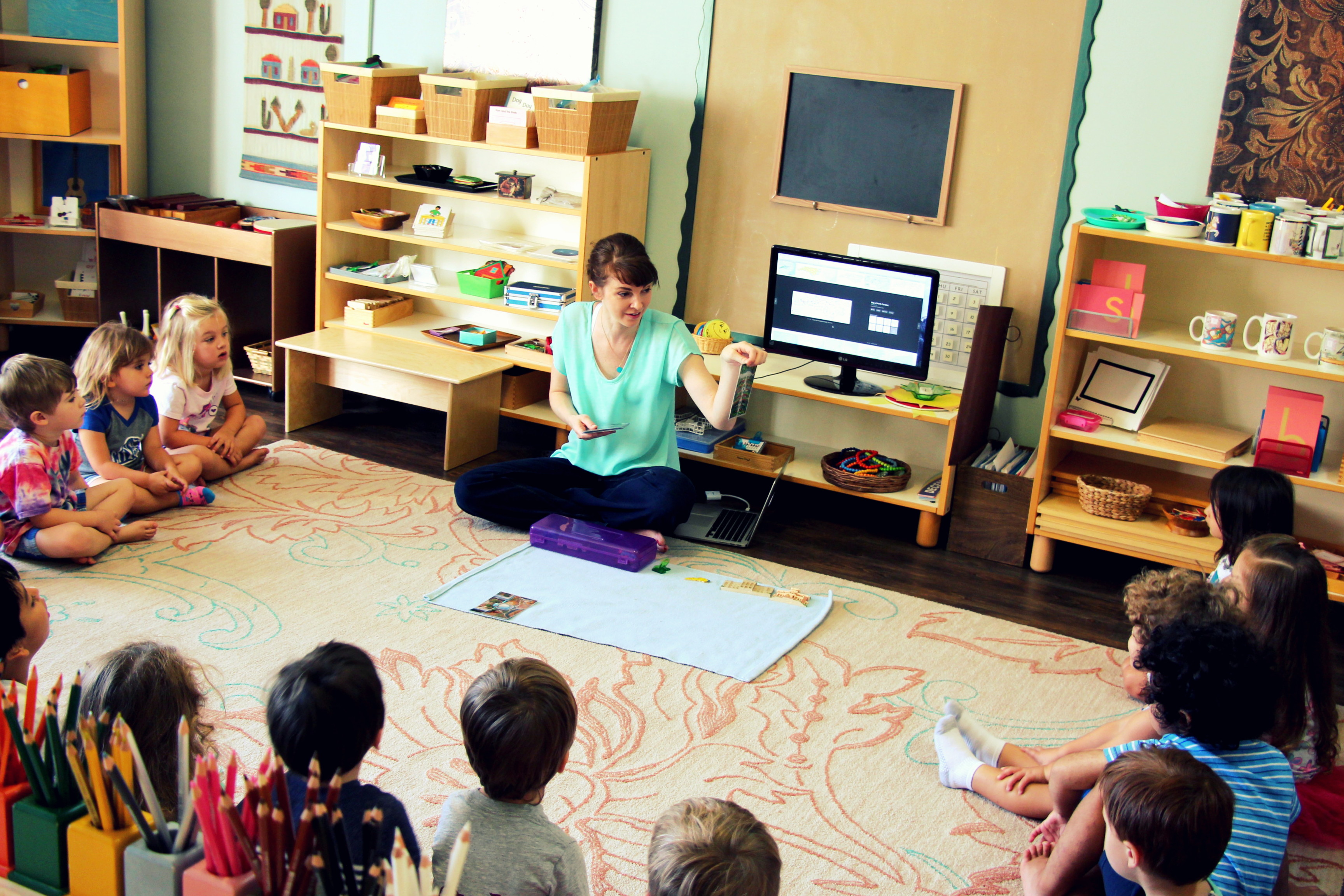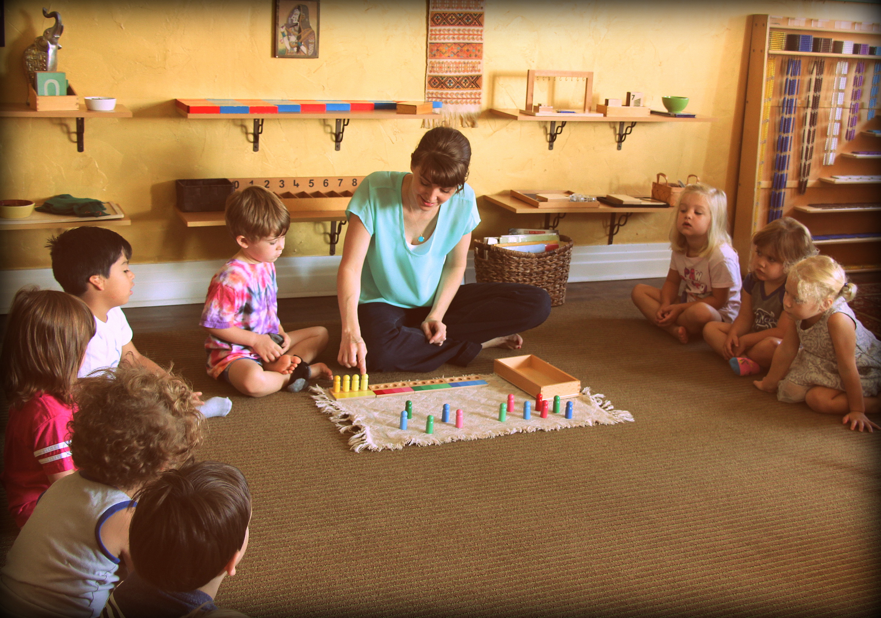 Below, I have included a number of large group and small group lessons given by Miss Anisa and me. We don’t always have time to take photos of each other, but hopefully this gives you a window to see a part of our world. Our students know that lessons are very important as it offers them new opportunities to explore all subject areas. You can see that they are very focused, in tune, and respectful during these lessons, eager to try the material out themselves during the work cycles!