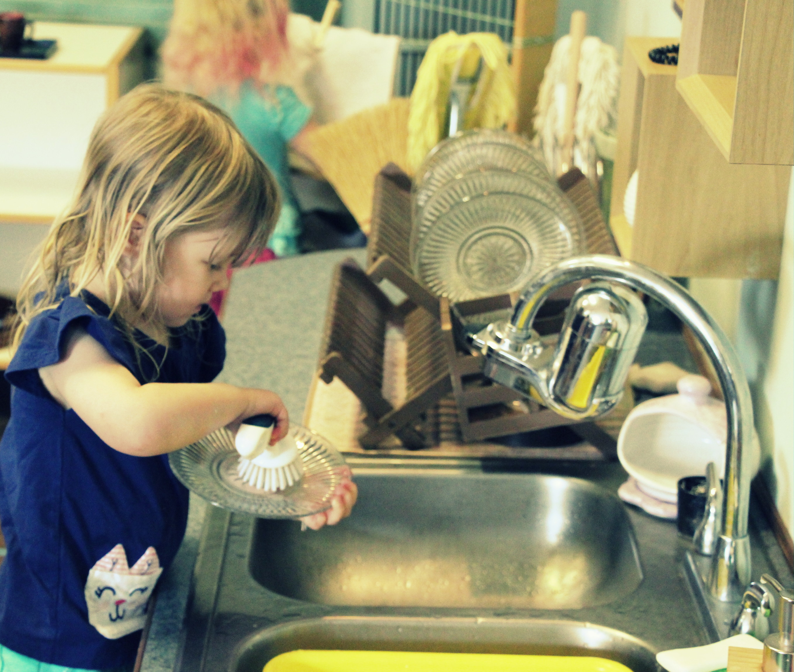 Just between us, after school hours the teachers put the dishes in the dish washer, just to be sure they are super clean ;-)