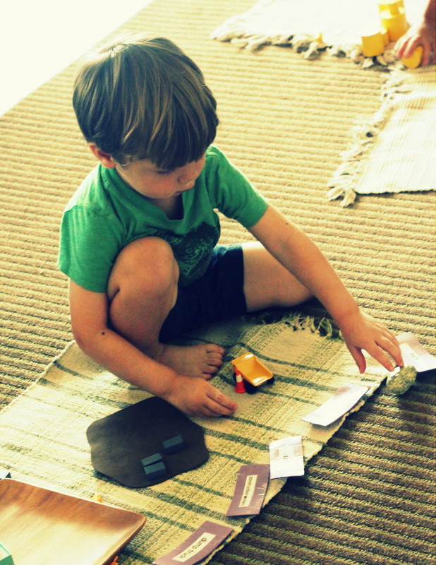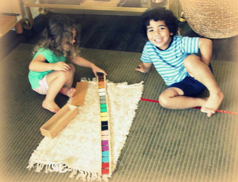Lesson on color variations from light to dark, a prerequisite to our Montessori Color Box 3, where children practice their visual sense to recognize subtle variations between colors