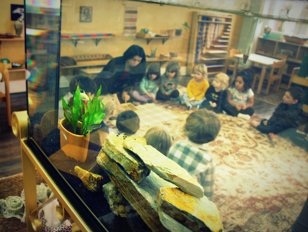 Interesting material such as objects from nature can be found in the cozy area to encourage peaceful thinking.