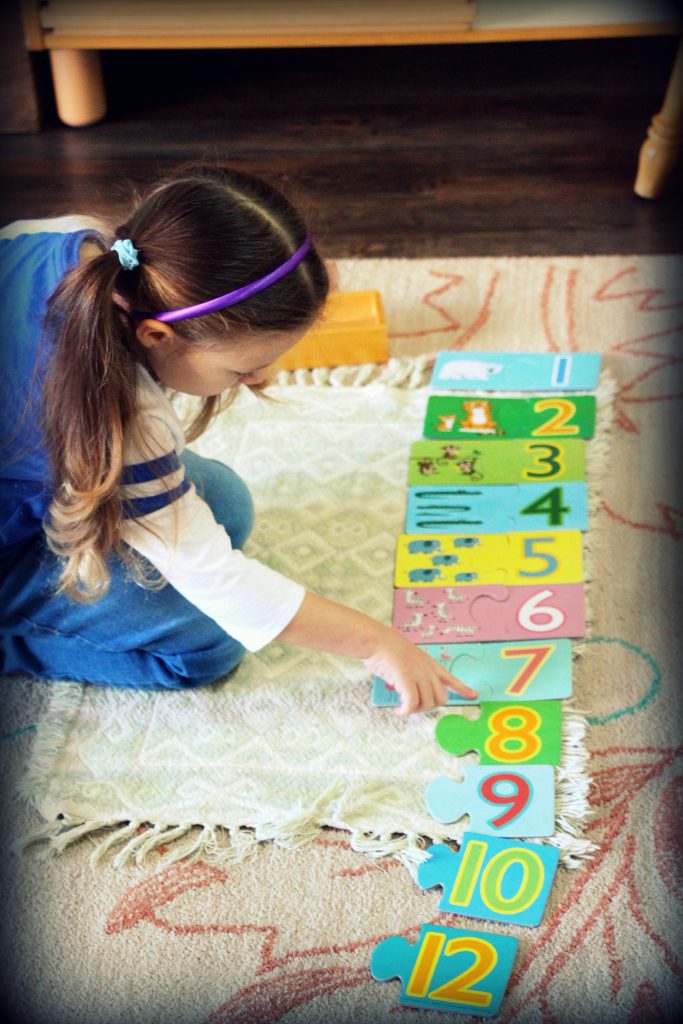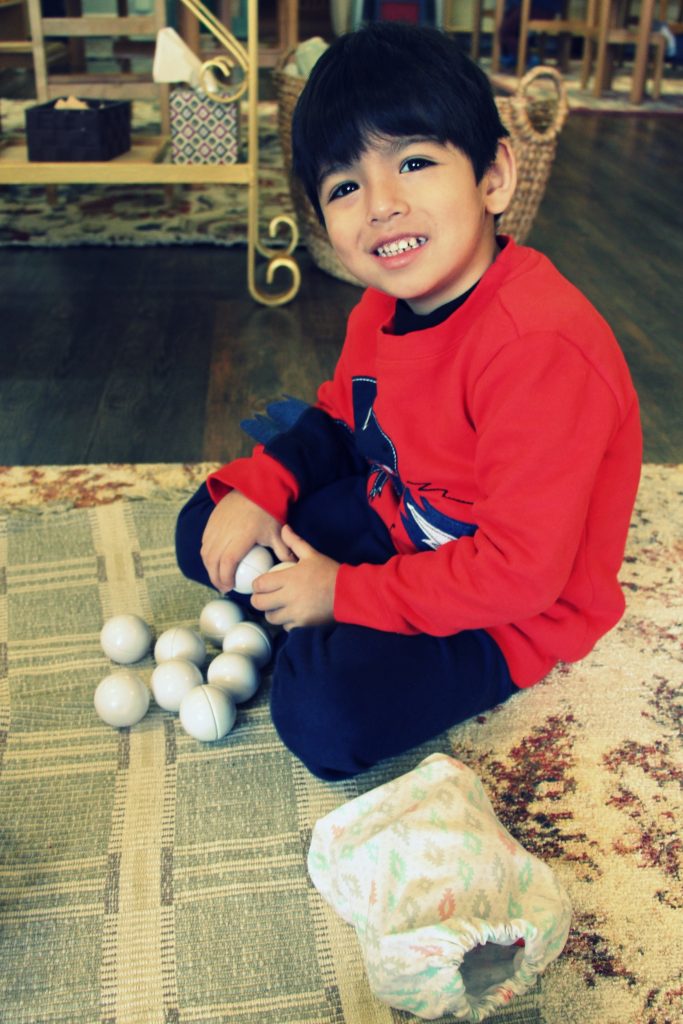 Our young ones are still practicing numbers one through ten as they begin to learn their sense of order. Similar to the way that we teach language, we do not correct them in the moment as they practice during work cycle as it could discourage them from their interest in learning math. Instead, when we notice numbers are not quite in order, we observe that the child is making an effort and we let them explore on their own. When a child comes to us and asks for help or when they are looking for something to do, we will invite a child to join us in small groups or one-to-one lesson to give them a chance to practice their sense of order with guidance. We also continue to give lessons to our students on the order of numbers as we match the quantities, and gradually their sense of order develops as they practice the material on their own.