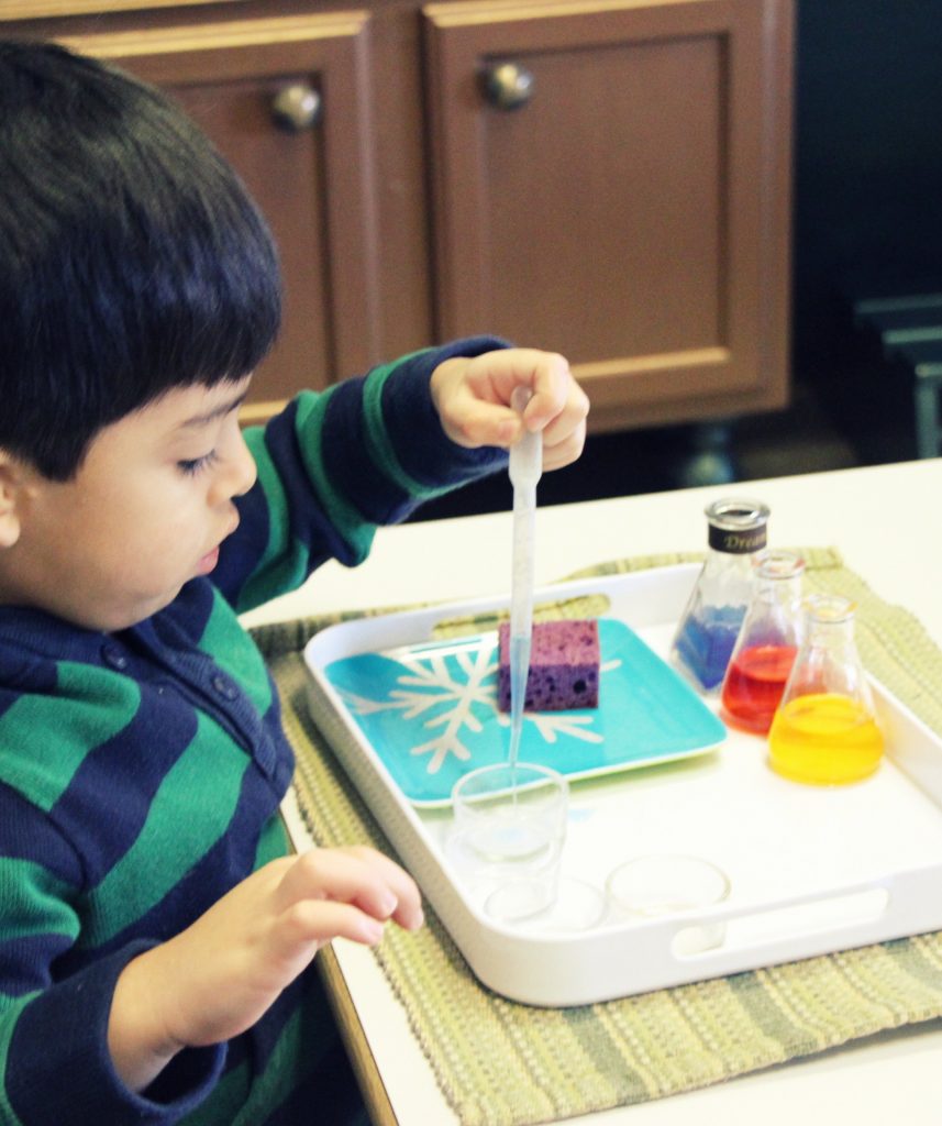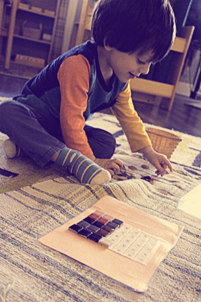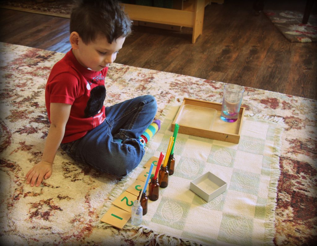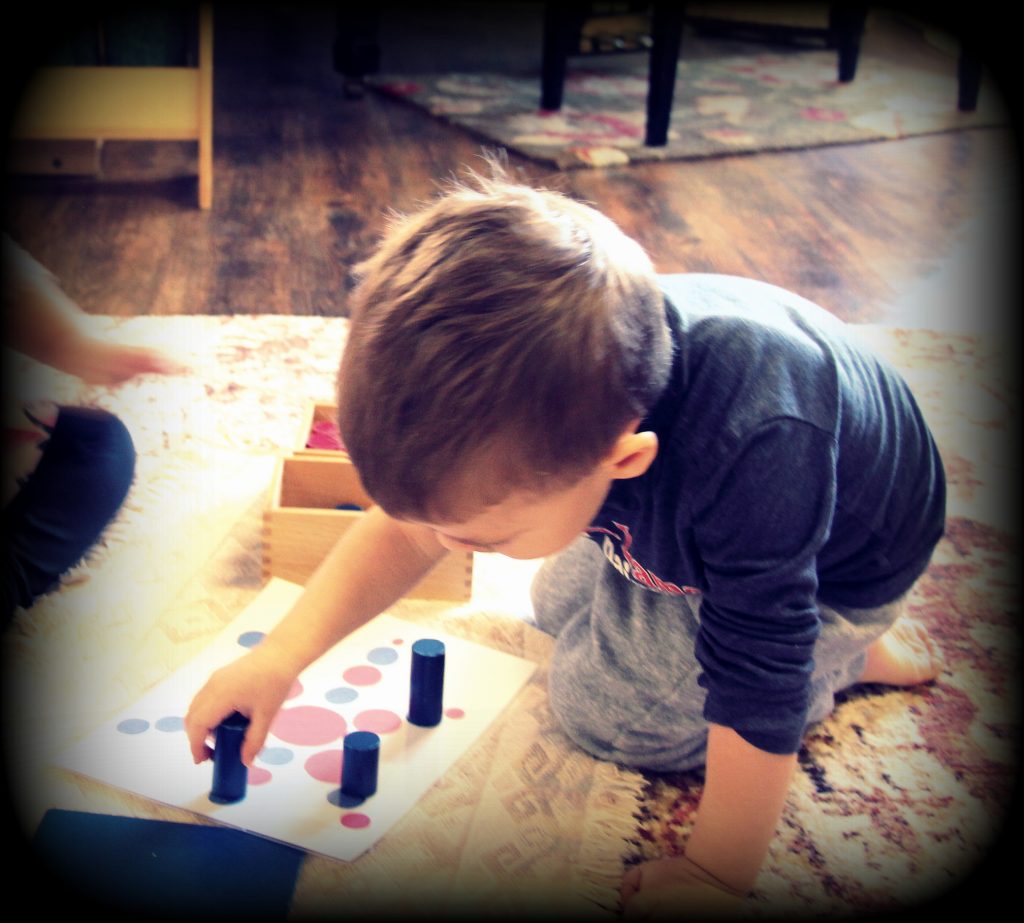 The Montessori exercise called “pin-poking” is offered in the practical life area