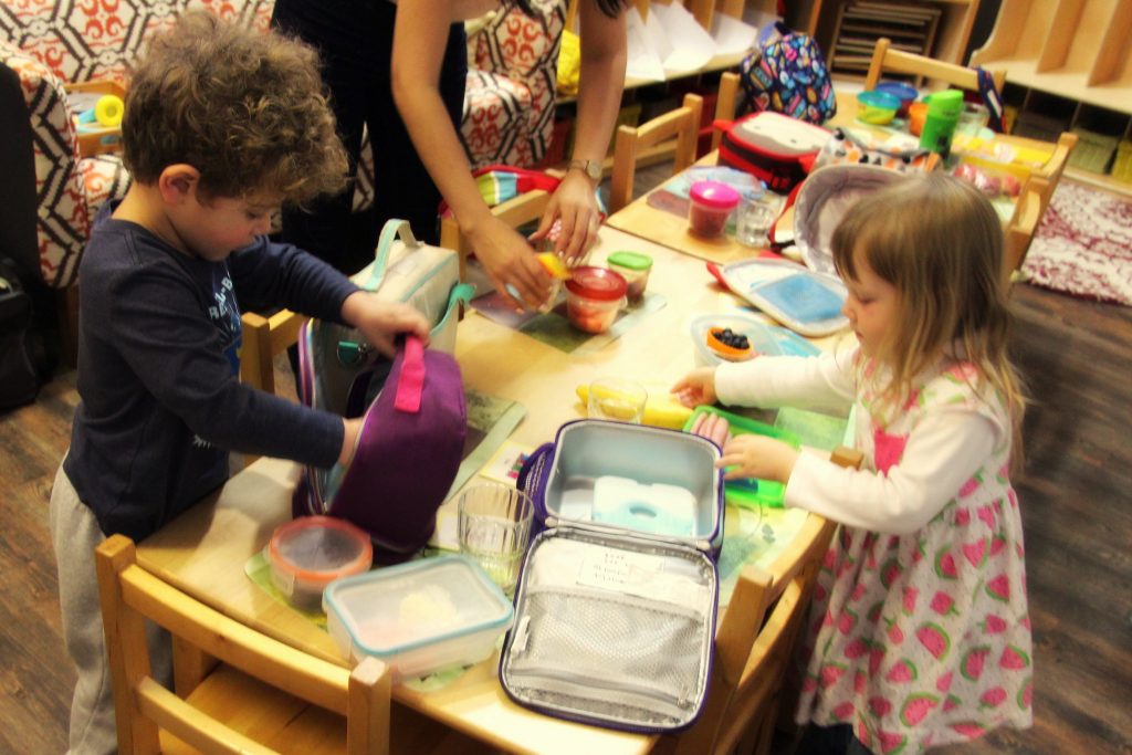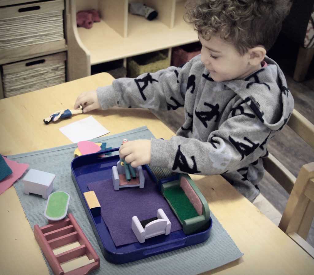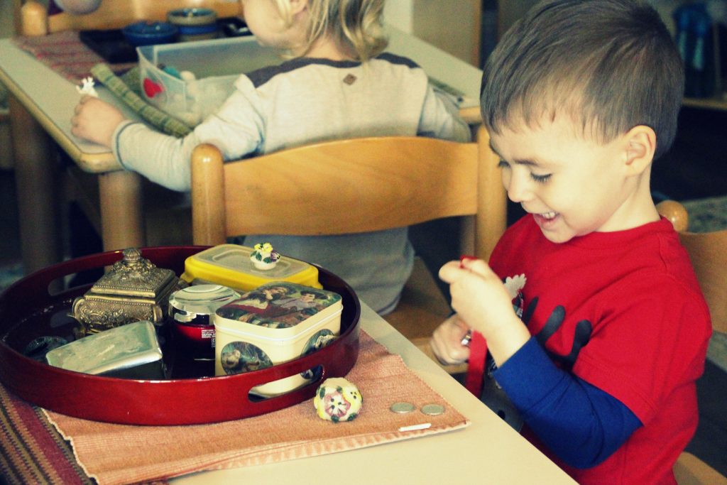 Recent winter-themed works offered for our students to explore in our practical life area. Take note that everything has a special place and order on the shelves. As you can imagine, this area is an entertaining and creative outlet for the teachers when it’s time to rotate material and create new works, and it brings us joy when we see our students showing interest in something new that we just put together 🙂
