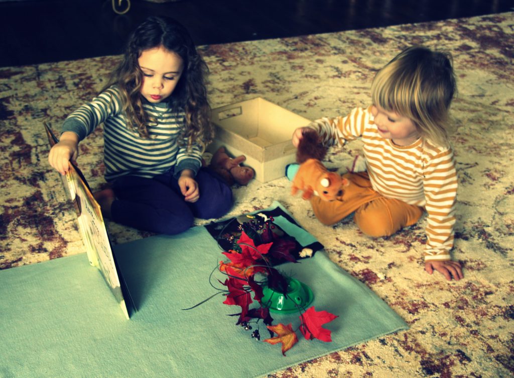 Since we have a variety of ages in the Primary Studio, every child is working in different areas on language. At this time of year during the work cycle, the youngest ones are especially practicing to use their words through storytelling, taking turns with one another, and exploring imagery and word cards in our language section.