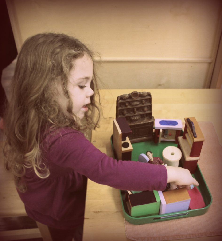 We tend to get into the topic of interior decorating whenever we teach about keeping our environment beautiful and safe. Our students learn that everything in our studio has a special place, and they realize that when everything is neat and organized, we feel safe and comfortable. We link interior decorating when we talk about our emotions and feelings, since order and color choices in a room can create different moods. With our interior decorating model work, we encourage our students to think about spatial relationships with the tiny furniture, along with accents by using little blankets, rugs, and pillows in order to brighten up a room. They have so much fun laying out the furniture in different ways to create new settings and original designs.