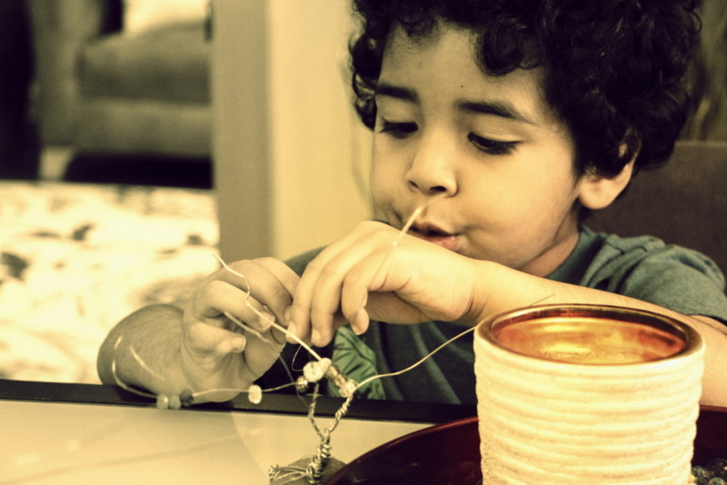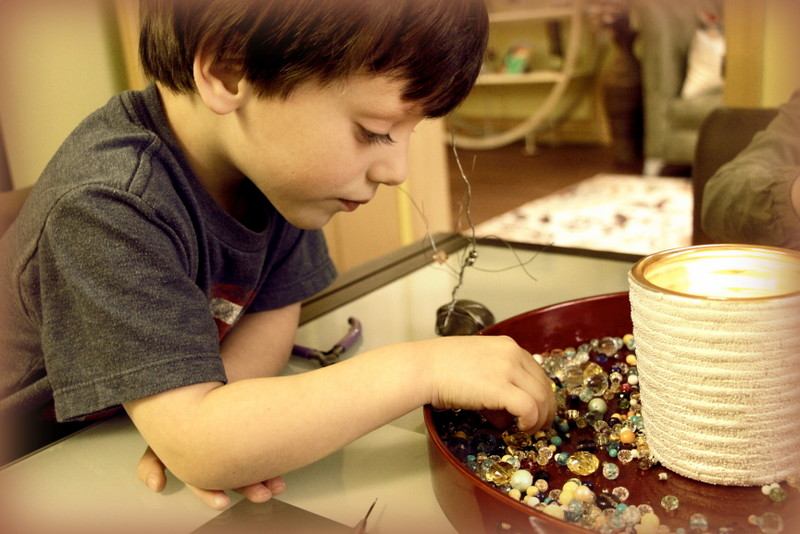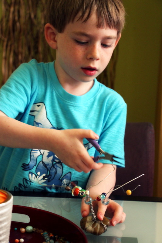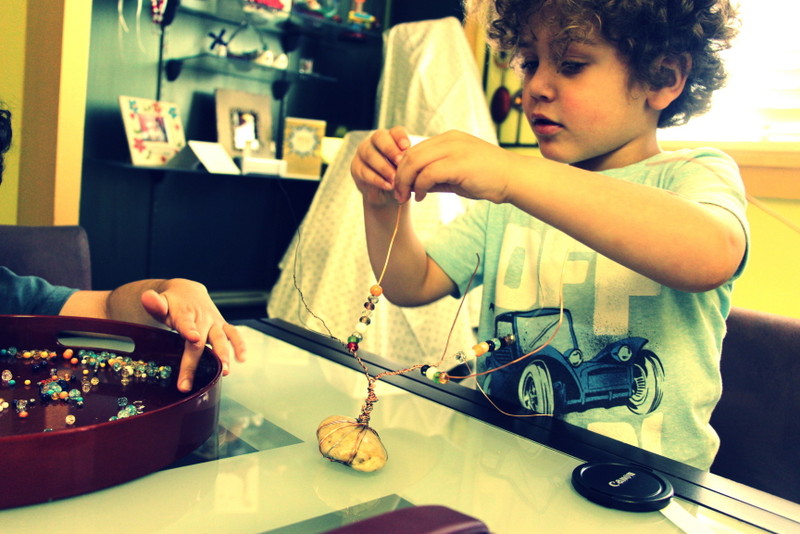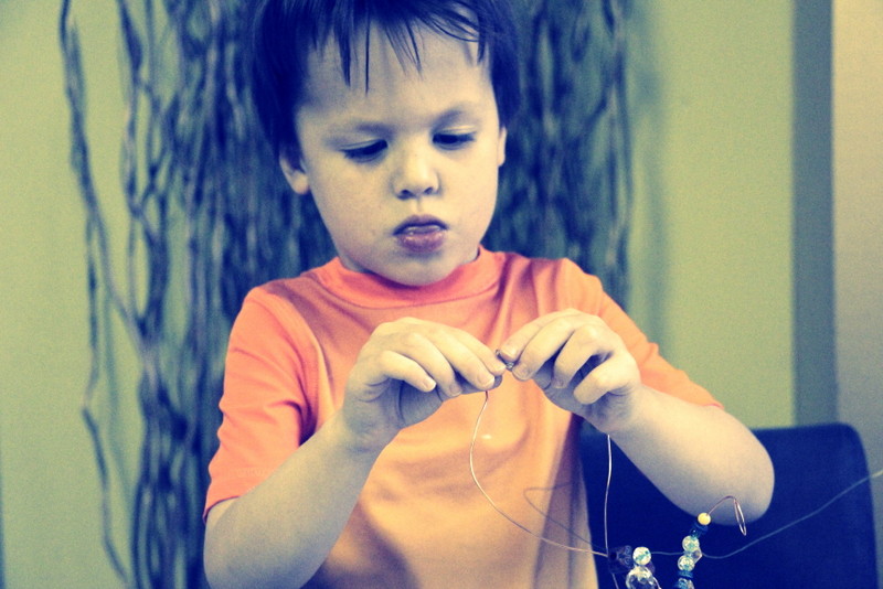 Before we dive into the special day, let’s backtrack and see your children at work as they spent some thoughtful time with choosing beautiful beads for your wire trees. This was also a great fine motor activity as they threaded tiny wires to decorate a gift for their special parent.