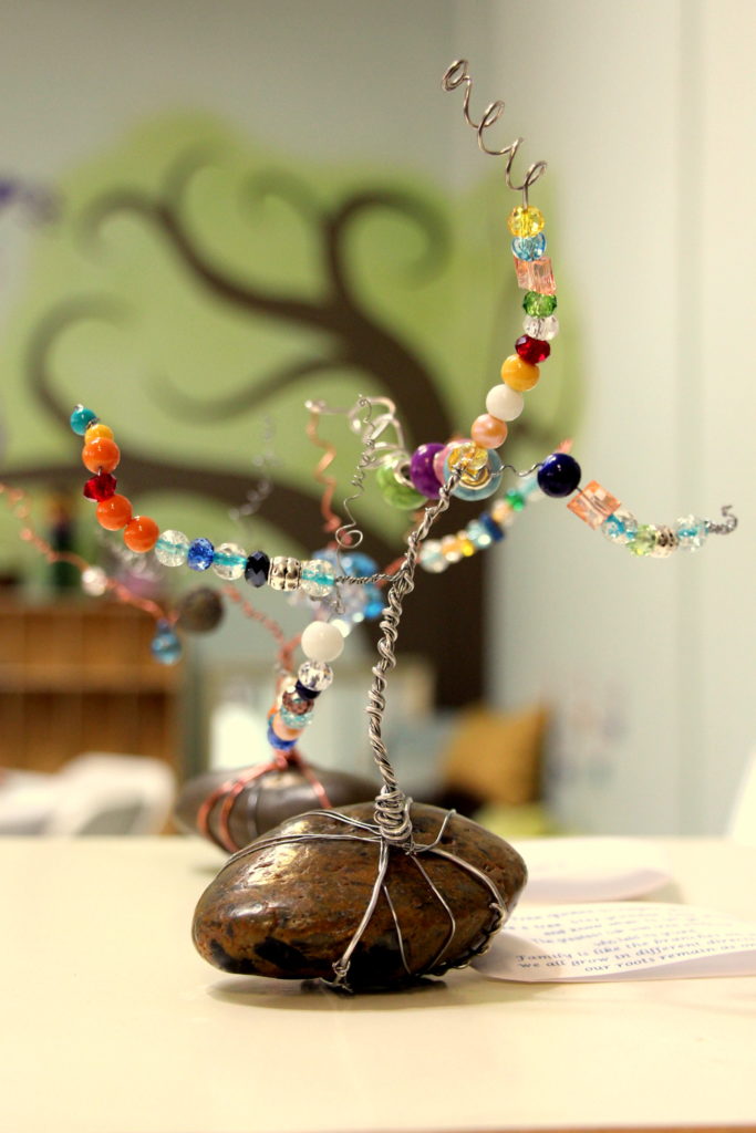 Your children were thinking about their families while building their little wire trees, and we hope that the inspirational messages resonate with you every time that you glance over at these sparkling jewels on your desk or shelf.