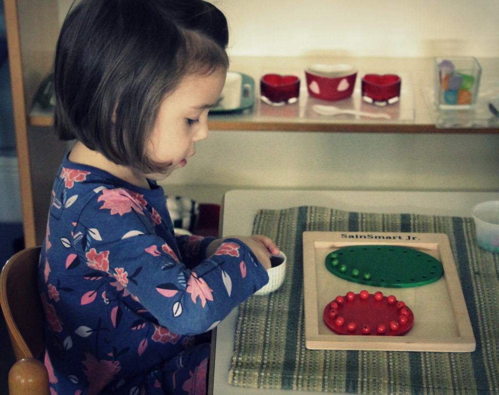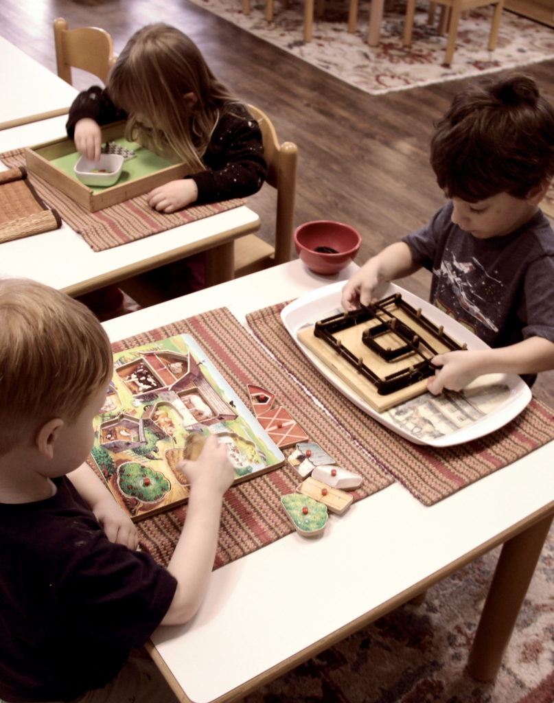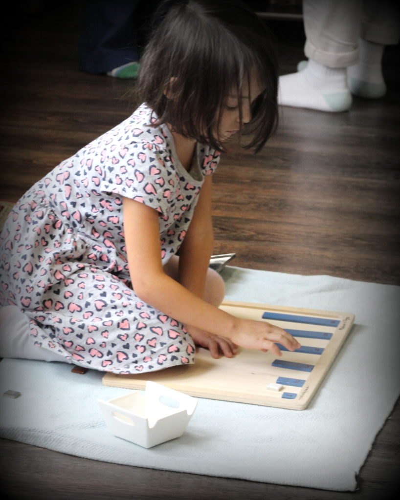 I have categorized the above lessons by locations in the classroom where children can find the material during work cycle, but many of the subjects that we teach tend to fall under other subject areas. Children are also learning that some of the original Montessori materials can be combined with others through extensions.