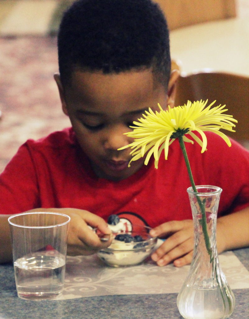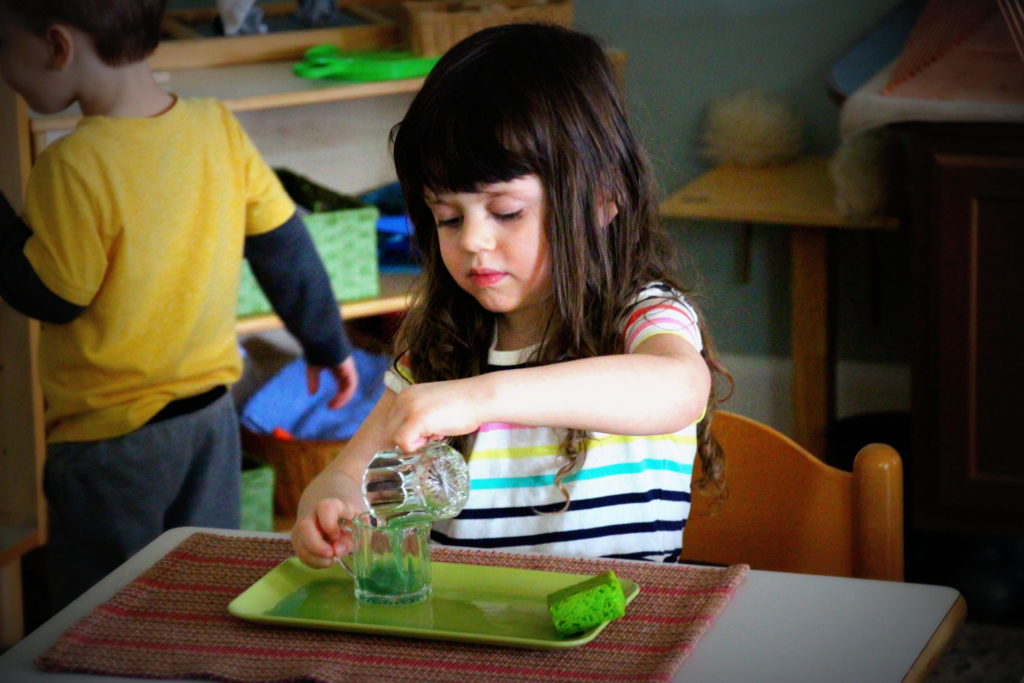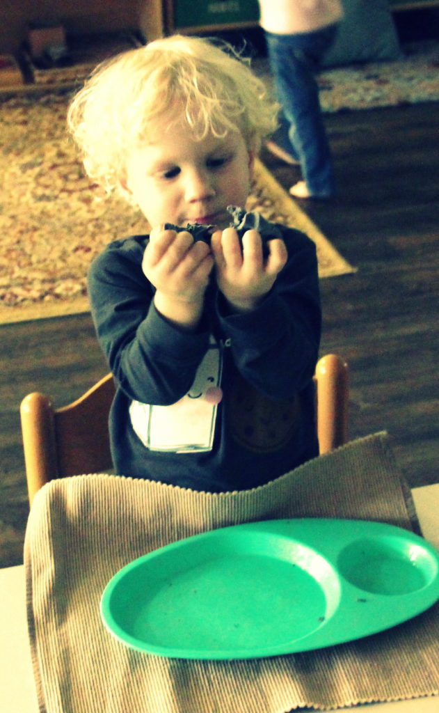 Our students look forward to a self-serve snack area as they take turns eating cafe-style, throughout the work cycle. We make sure that every student takes a break at some point in the a.m. to participate. They have all thoroughly enjoyed the healthy snacks, along with the opportunity to take a break in the day to chat with peers seated next to them. Your children take pride in preparing their own snack, serving themselves water, cleaning up after themselves, and (believe it or not) washing their own dishes.