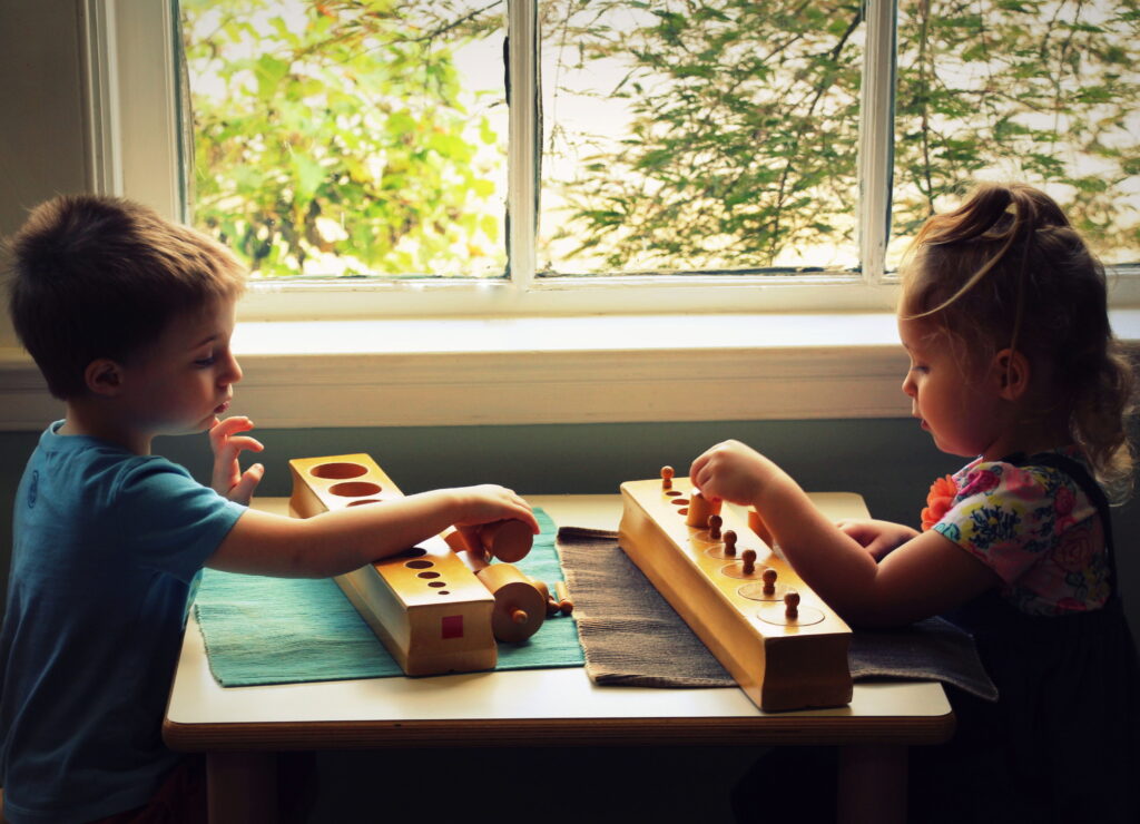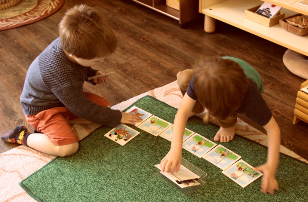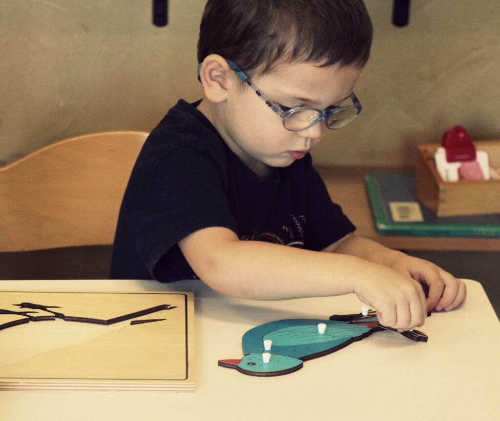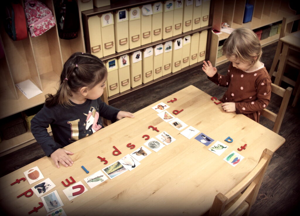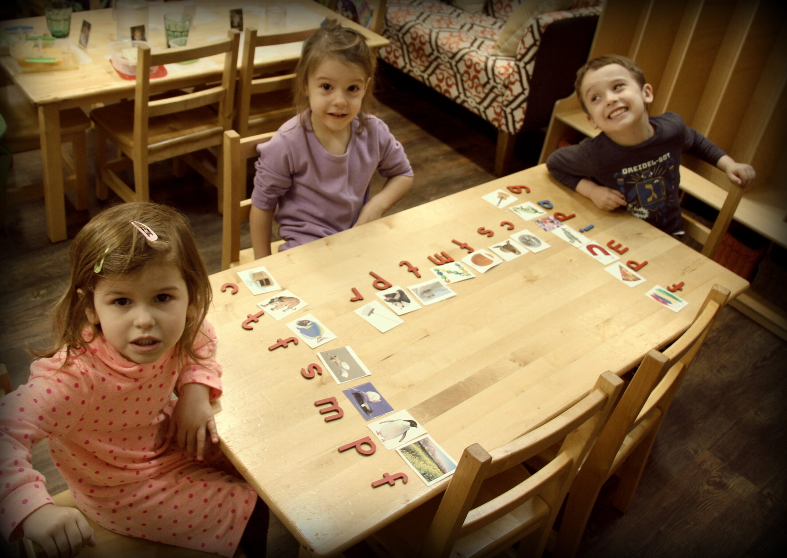 Every student continues to have lessons on all 3 letter sets presented in group lessons, whether they are just exploring these sounds or reviewing them to retain their knowledge. Recently, students have been participating in memory activities offered during the work cycle with the use of our Montessori wooden letter sets. How it works: first, each child is presented with a row of picture cards and a wooden letter to go along with each image (i.e., their “beginning sound”), and then a teacher will mix up the wooden letters for the children to work on their memory skills as they return each letter under the appropriate image to the best of their knowledge. Even our youngest of students love this challenge as they sharpen their short-term memory skills. Whether they get all of the images right or not, we do not correct them – instead we focus on the letters that they got right, and gently re-introduce to them the letters that they mixed up. Keeping the game light and positive keeps our students coming back for more!