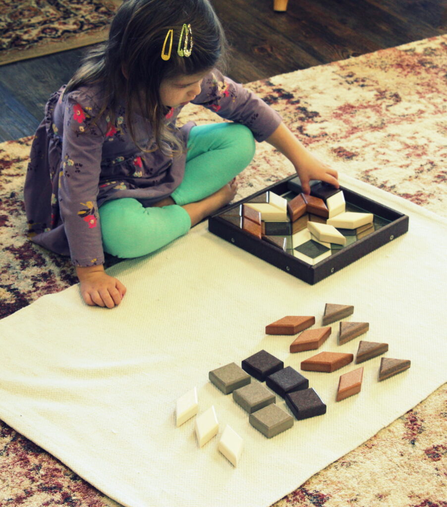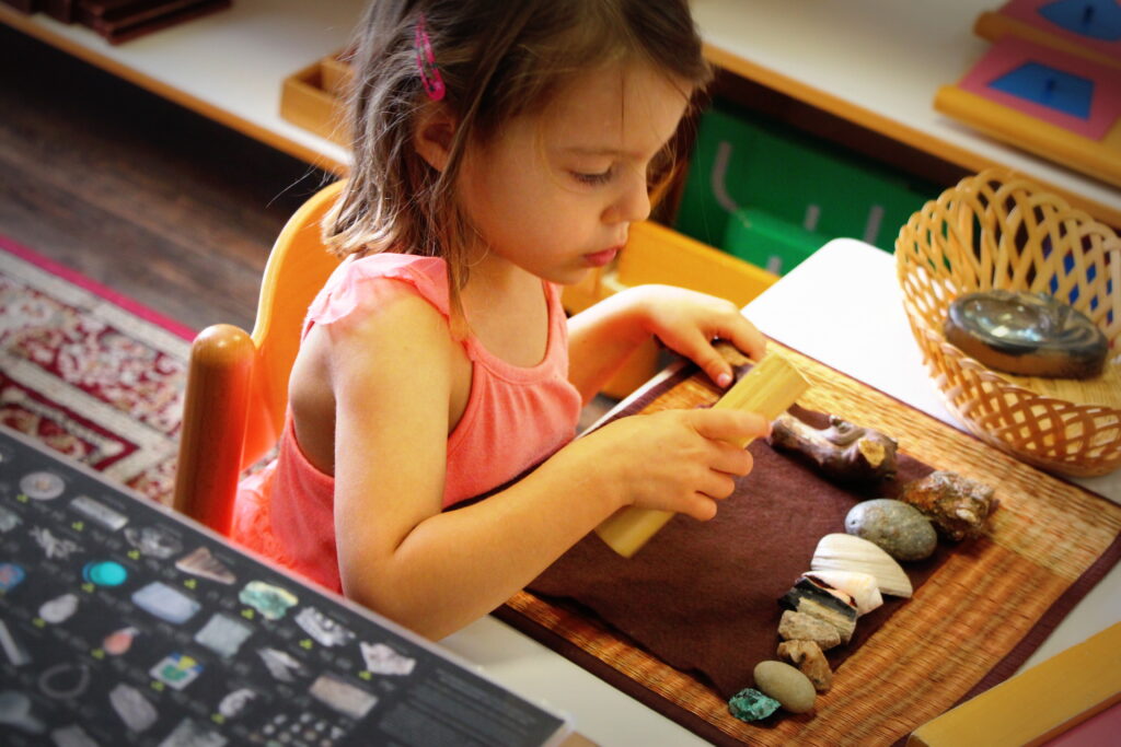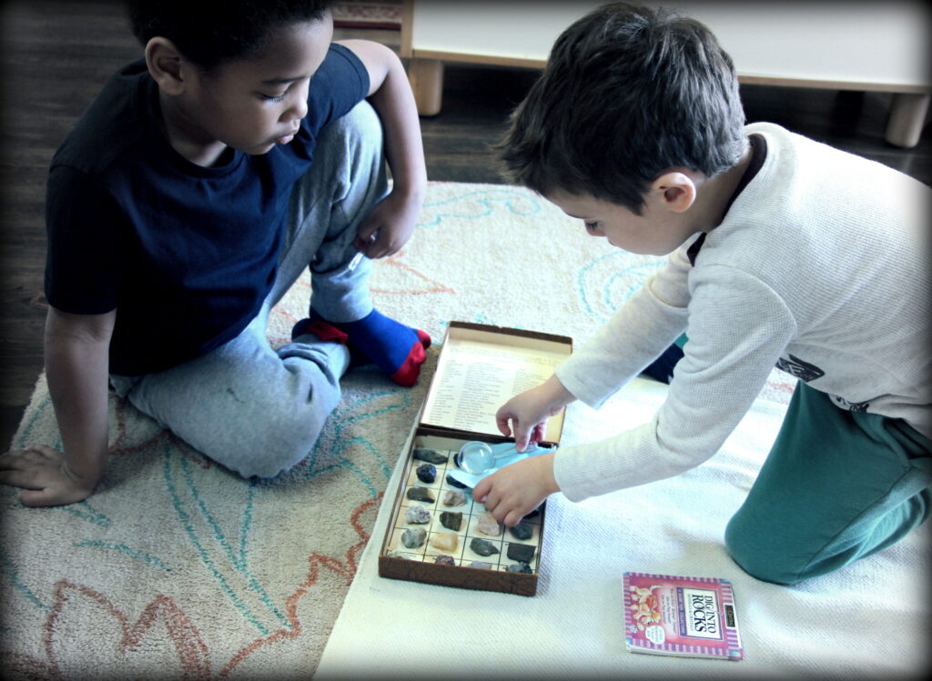 Rocks, Minerals & Crystals. There has been high demand for exploration of rocks, so we have had fun putting together works that help children to recognize different types of rocks. So far, they have been learning to categorize real rocks into these basic categories: igneous rocks, or as the children like to call “fire rocks” and “volcano rocks,” sedimentary rocks, a.k.a. “sitting rocks,” and metamorphic rocks, a.k.a. “a mix of fire rocks and sitting rocks.” As you can imagine, our students are especially intrigued with the “volcano rocks,” and have enjoyed fun facts about how lava/magma dries at different speeds, creating different reactions and appearances in the rocks. For example, some have vesicles (gas bubbles) like pumice rocks, due to such fast drying of the magma. One of the rocks in our collection from the igneous or “fire rock” group includes a basalt rock, and when we told our students that it can be found on the Moon and Mars, everyone’s eyes widened with dropped jaws, followed by “wow’s” and “ahh’s.”  The fun facts go on! We have also touched base on minerals in some of the rocks mentioned above, and plan to get more in depth in the new year as we explore minerals and crystals through a beautiful collection in storage, waiting to be examined by our curious students.