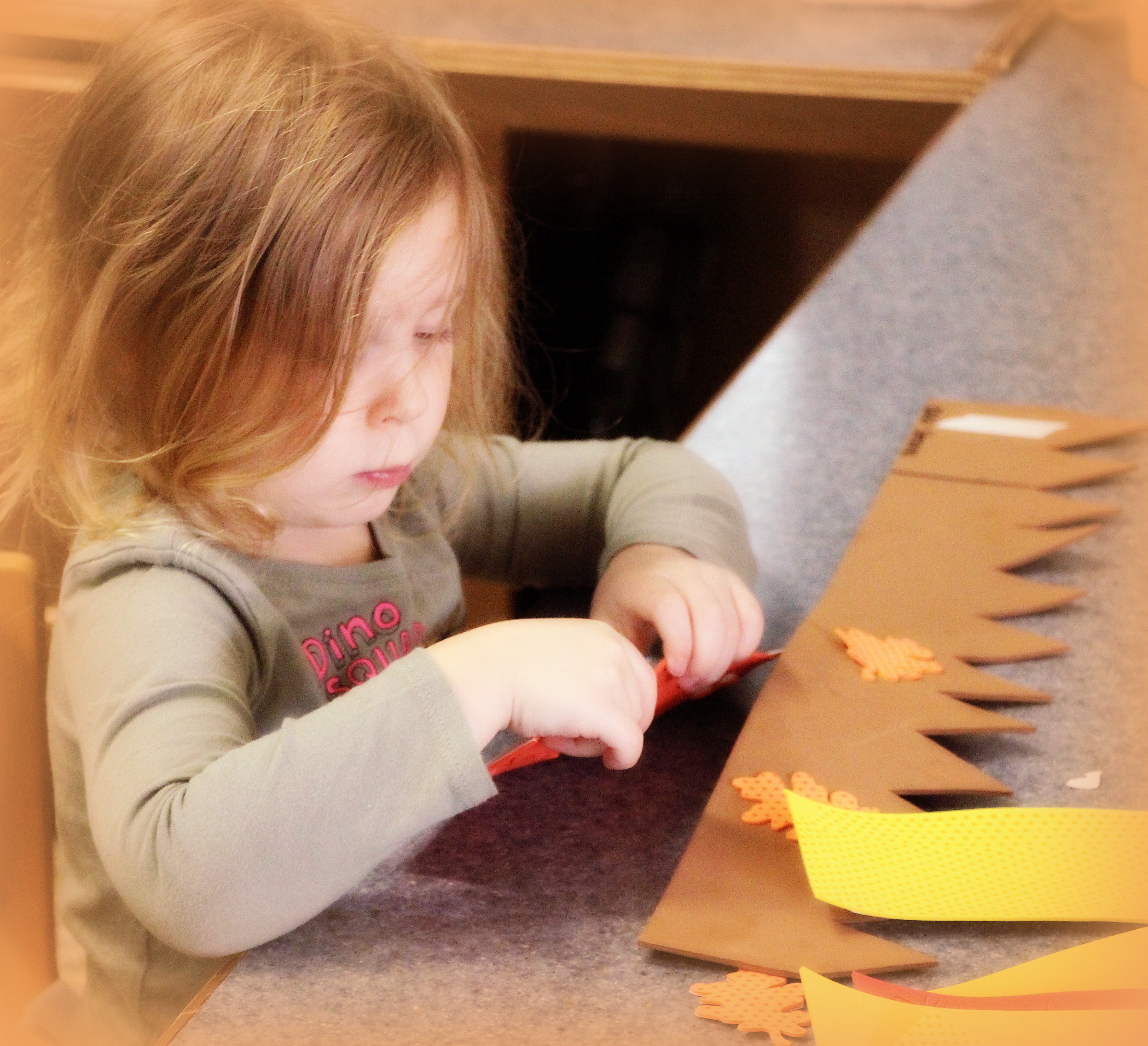 Fall Crowns. Children enjoyed taking turns in small groups to decorate festive fall crowns with Ms. Lauren during some fall work cycles. This was a great activity to work their fine motor-skills as children enjoyed peeling their own leaf stickers to decorate their crowns.