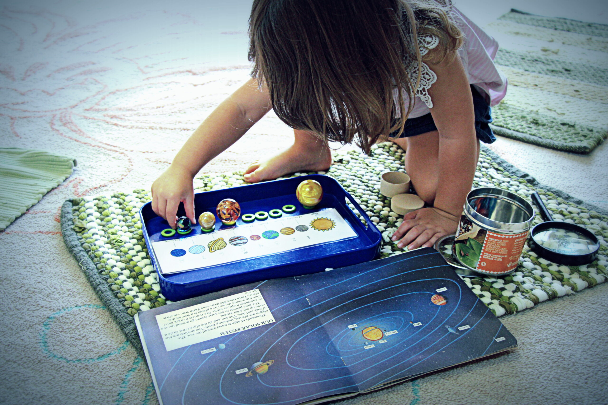 Our Solar System. Our first lessons were around the sun and planets within our solar system, along with some fun facts about the sun and the orbiting planets. Recent lessons include extensions on recognizing the layout of our solar system, categorizing the 4 interior “rocky planets,” and the outer “gas planets,” along with the asteroid belt floating between these planets. While your child may only be retaining a few fun facts along the way (although they might surprise you), they are fascinated to hear about our whimsical universe and love exploring materials that teach them about outer space.