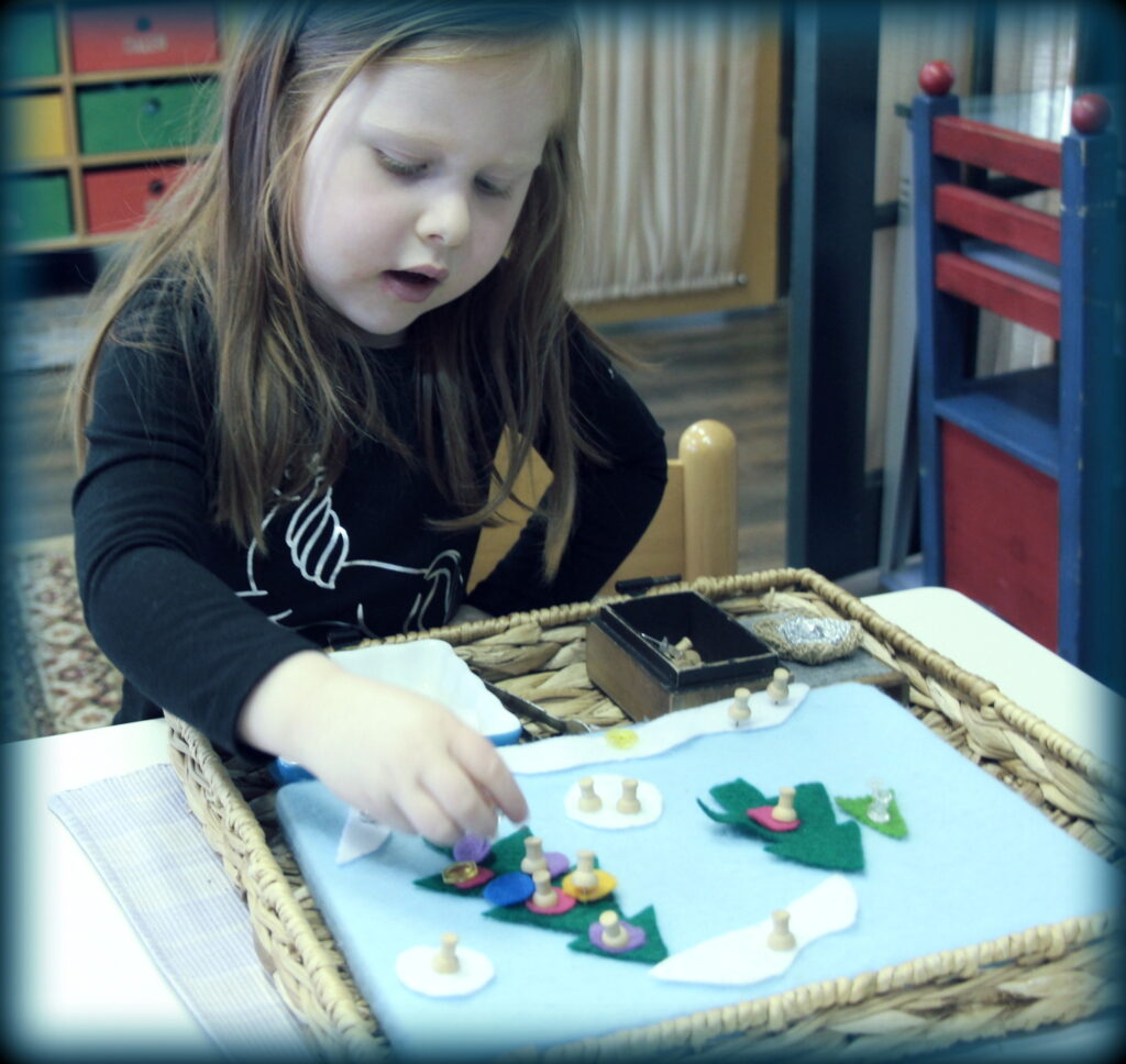 We tend to begin our winter season a little early at Indigo, since we will be missing your children during the first weeks of winter with the two weeks off of school in December. It gives us a chance to get festive with our works and to catch our students beaming with excitement over their own upcoming holidays. Check out our practical life shelf and imagine how much fun your children have had over the glittering objects and accent colors from a variety of holidays that we have been talking about from different cultures during the month of December. Oh, the simple joys we teachers have in putting together these practical life activities!