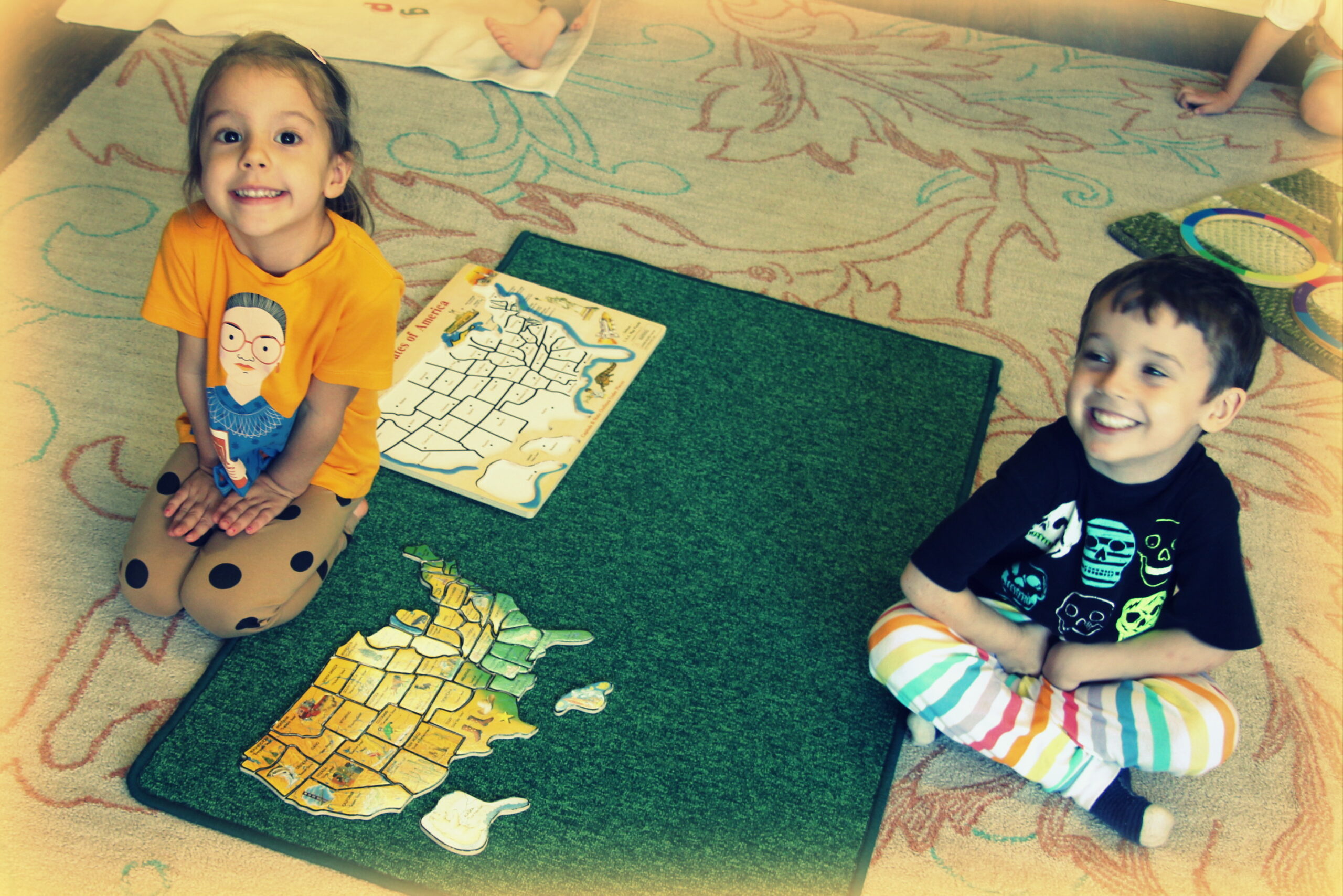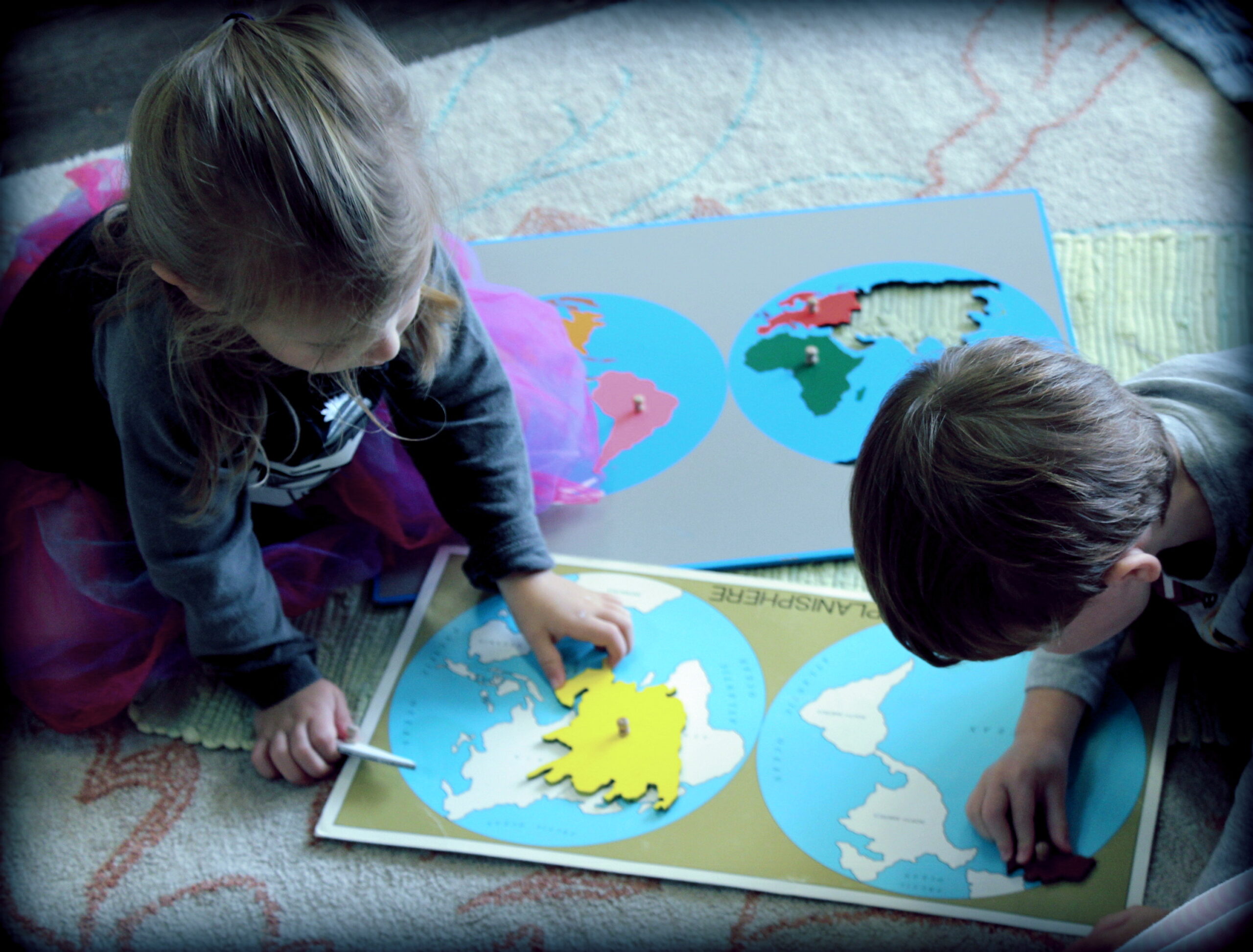 Geography Map Puzzles. As mentioned a while back, puzzles have been very popular during the first half of our semester, and our students have done so well with rebuilding simple puzzles next to their puzzle frame as they sharpen their spatial awareness, shape recognition, and focus. Since conferences, we have offered larger jigsaw puzzles without frames or control boards, encouraging students to use the edge of their rug as a frame as they sort all of the side pieces and corners, while the inner pieces are placed aside in a basket until they have put together the framing of the puzzle. This is our classroom approach to help keep track of our puzzle pieces as they stay organized for children to put their focus on the process. Now that our students are all showing a good sense of order in general, we have introduced our puzzle maps of North America, South America, and our USA puzzle maps to students of all ages. We take our time when teaching about each continent, so that we can share some fun facts along the way, looking at landmarks, resources, monuments, various cultures, and animals. Information overload never hurt anyone!