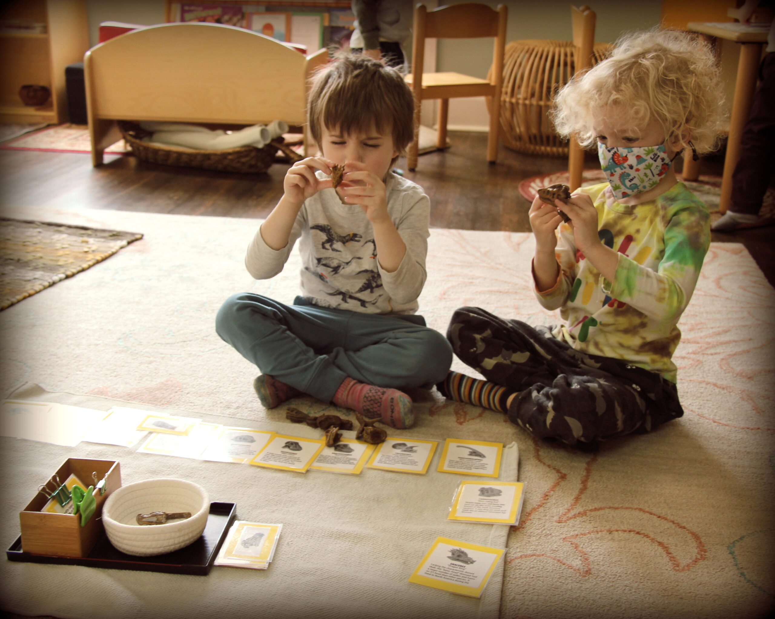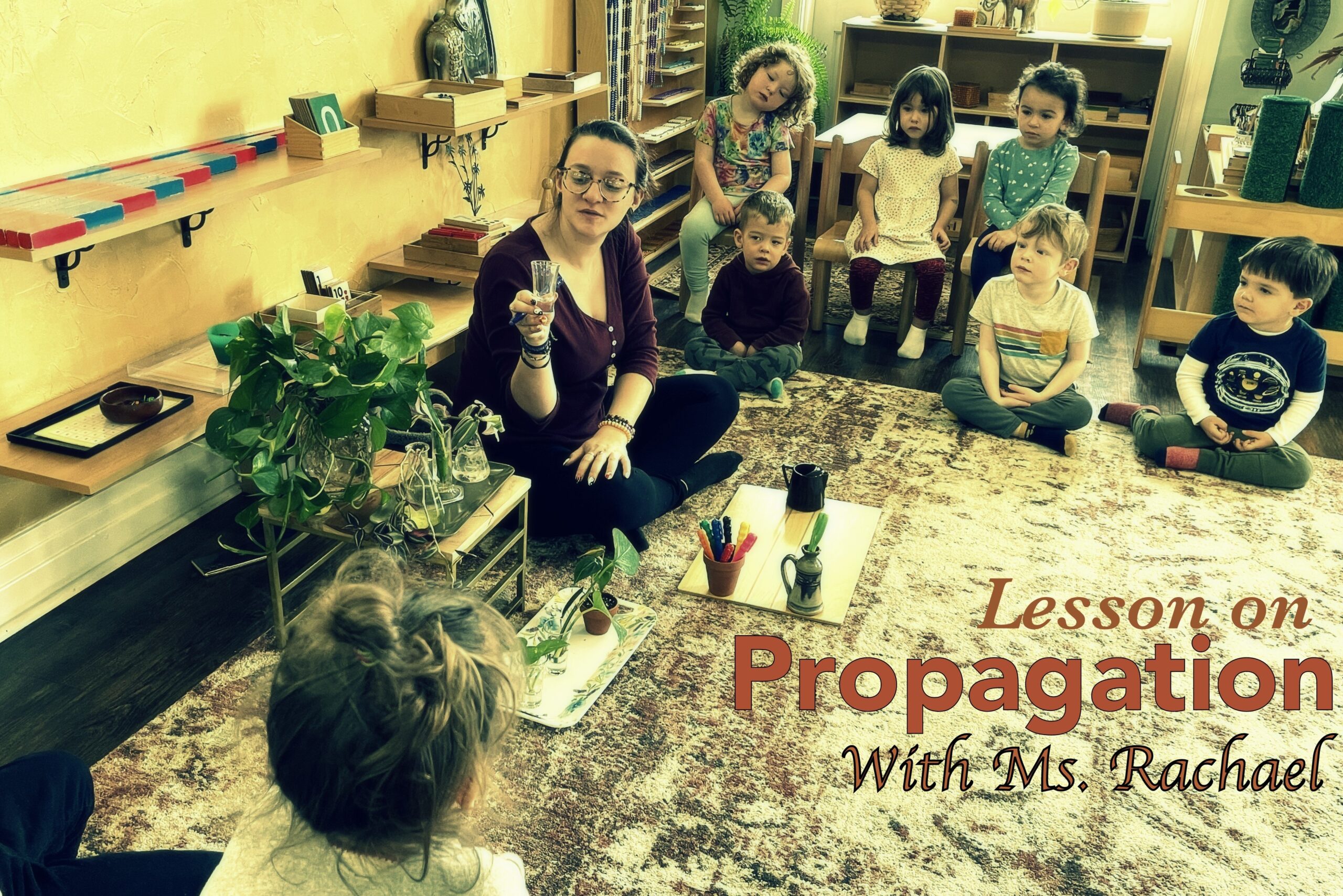 As we enter the season of spring, you may have noticed there has been a big focus on plant life in our classroom. We have a variety of potted plants, especially vine plants, throughout our classroom that children have been observing and talking about. When discussing the seasons, our students are hearing about chlorophyll, life cycles of plants, plant growth, propagation and more. As we “follow the child,” our students are also flipping through library books on these topics that branch out into season changes, pollinators, and animal species.