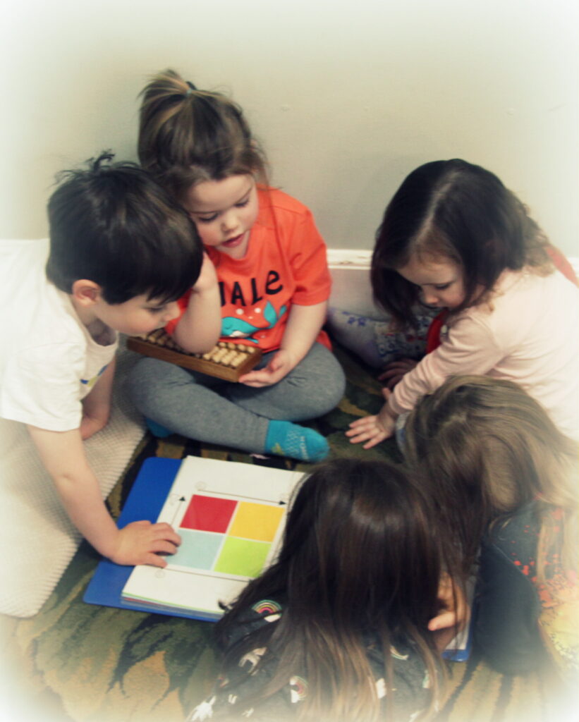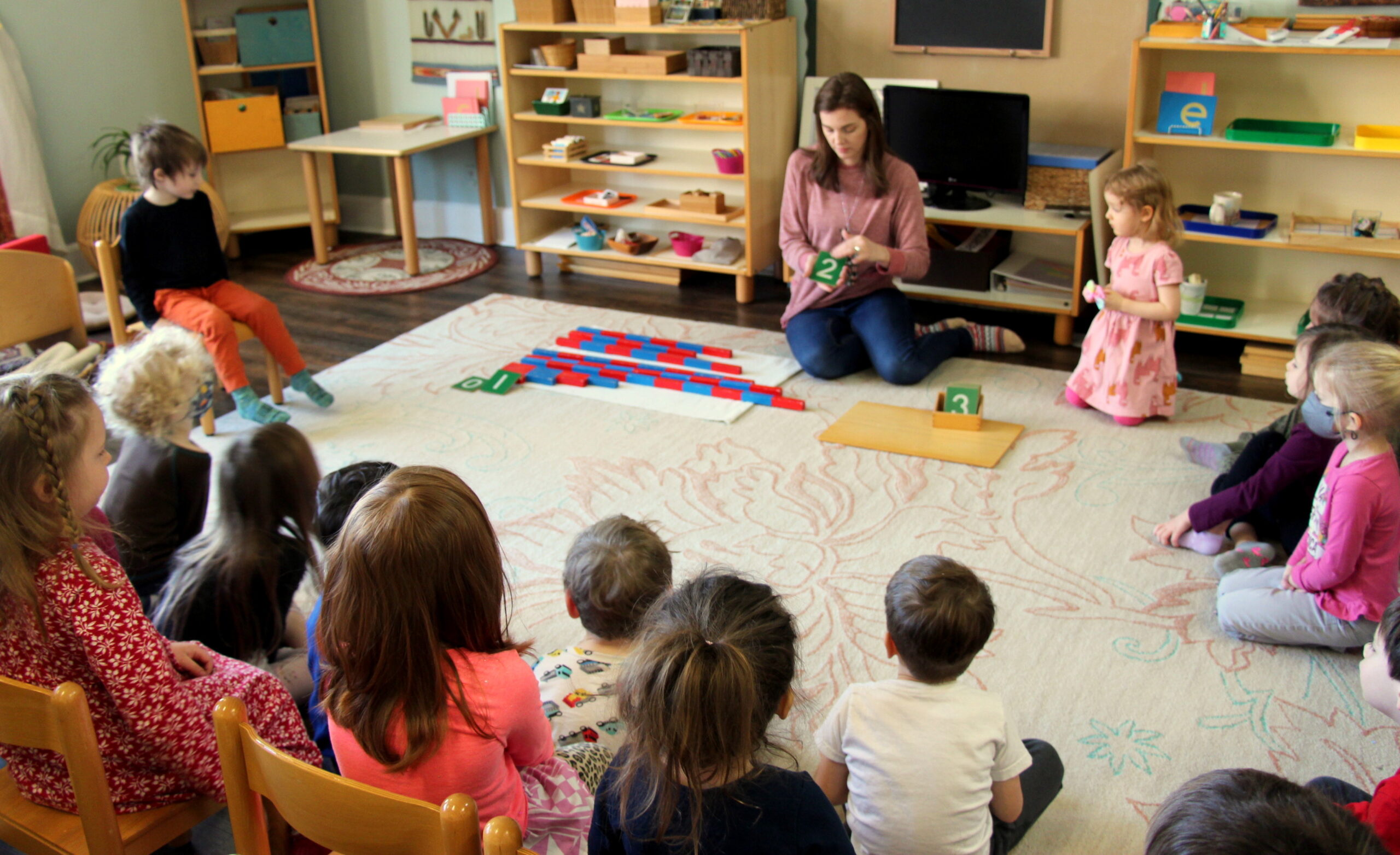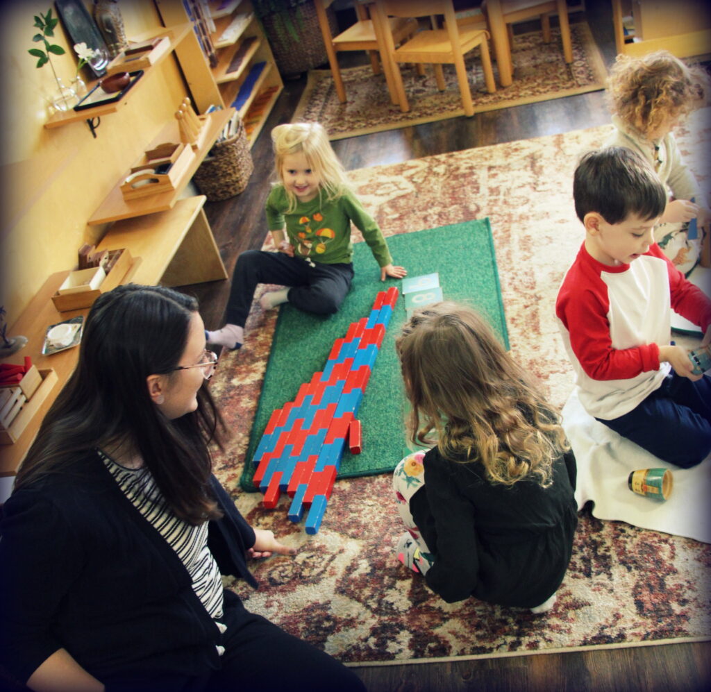 At this point in the school year, children have especially been learning in small groups based on their progress and readiness for different materials and concepts. We are considering each individual and their current path for growth, and soon enough, we will be sharing with you in detail about how your child is being challenged during the conferences coming up. In the meantime, just to get a better understanding on how the classroom is running at this point in the school year, many lessons are divided up into small groups that look like this: