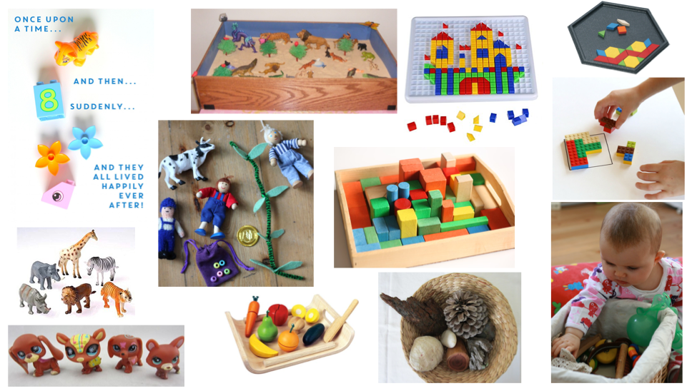 Constructive activities that children can get creative with include puzzles, mosaic toy pegboards, legos, connector toys, blocks, discovery baskets with nature objects, a handful of figurines with a few props for story telling, sensorial bins with moon sand and a few interesting objects, transportation bowl of tiny planes, trucks, boats, and a tray surface to work with them, etc. If you have old board games and (including games meant for adults) just laying around collecting dust, turn them into constructive building activities for kids. For example, a Chinese checker board can be used for making designs with the marbles, an old battleship game could be presented in a storytelling / artistic approach, such as creating build boat maps or patterns with pegs (i.e., opposite to the actual purpose of the game), and dominos are fun for making roads.